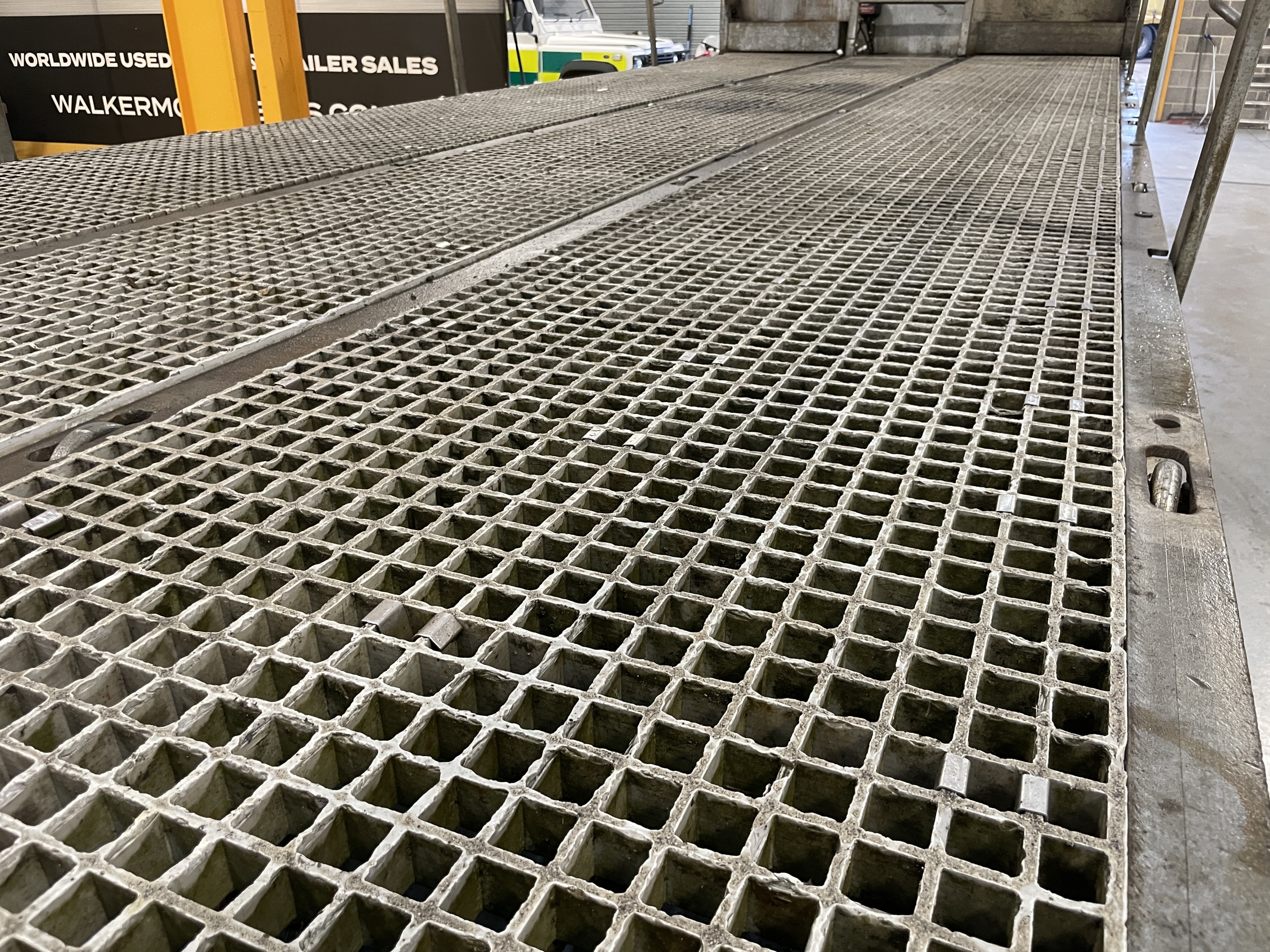 Hydraulic Flip Toe Ramp C/w Stabiliser Legs And Plastic Mesh Floor.