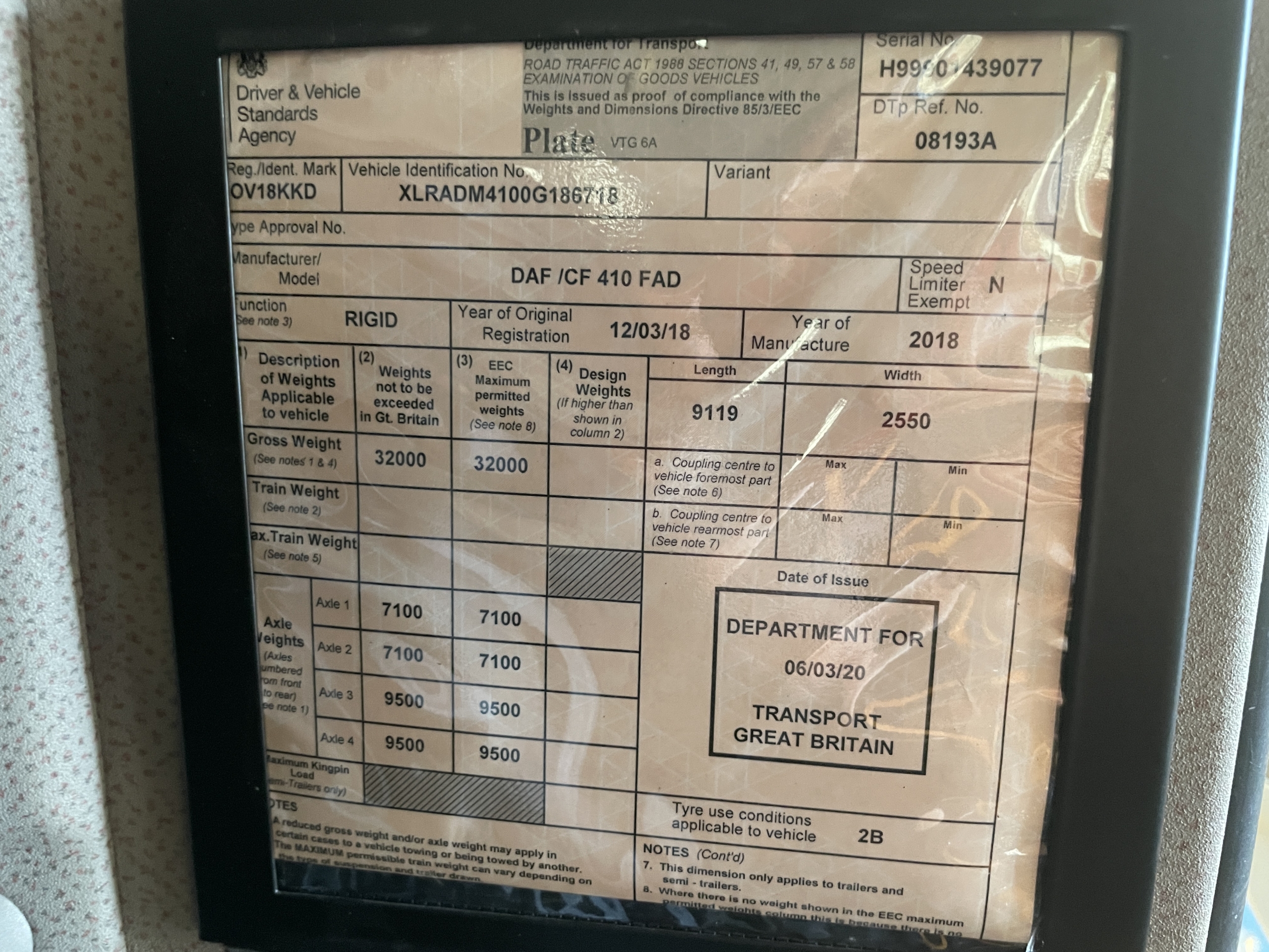 Registration Number : OV18KKD