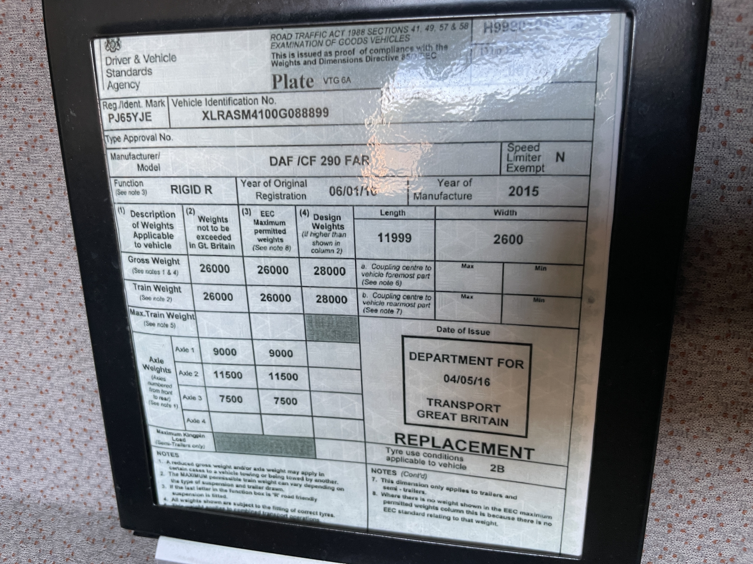 Rear Aperture : 7Ft 6ins.