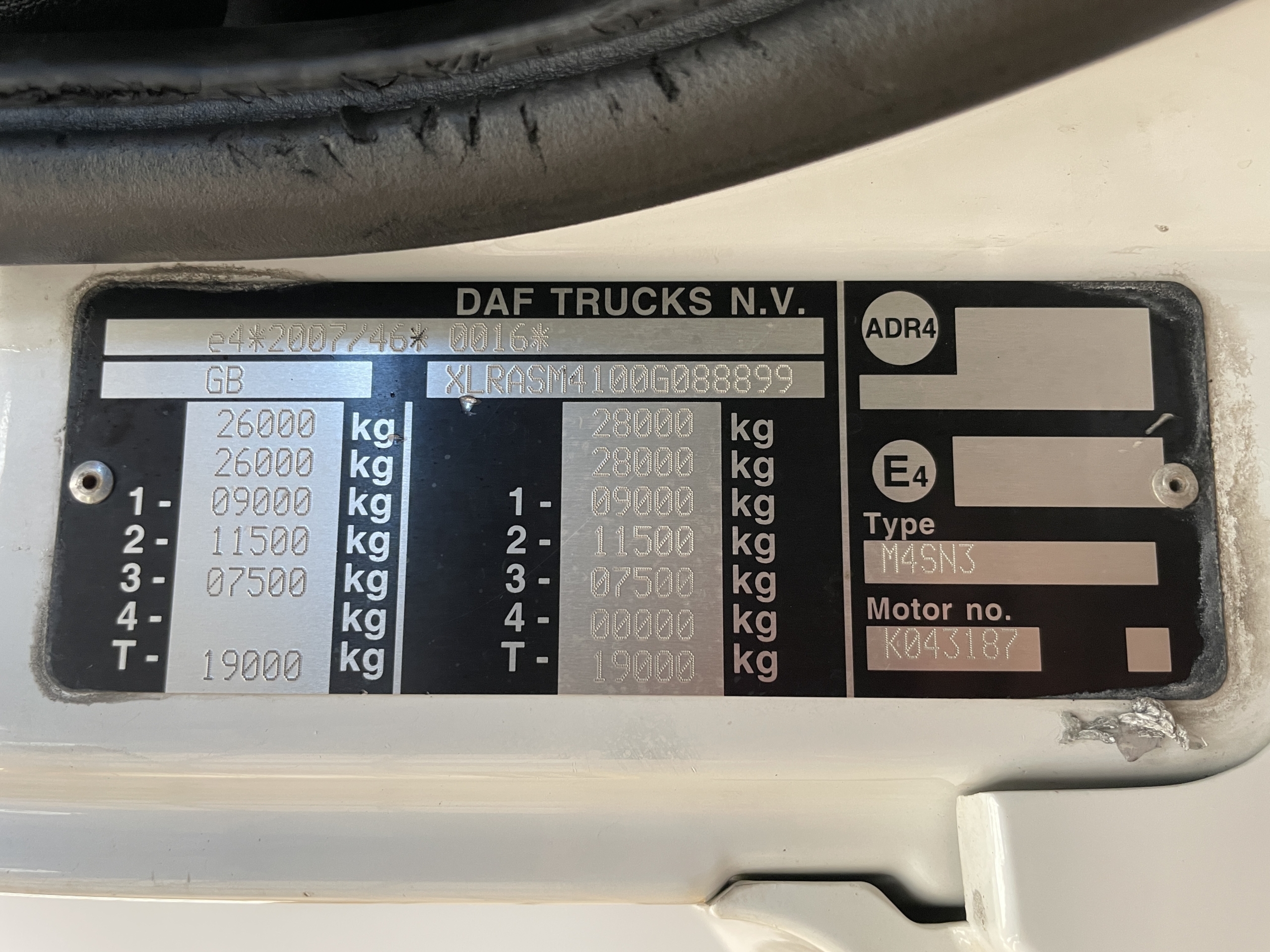 Front Axle Weight : 9,000 Kgs.