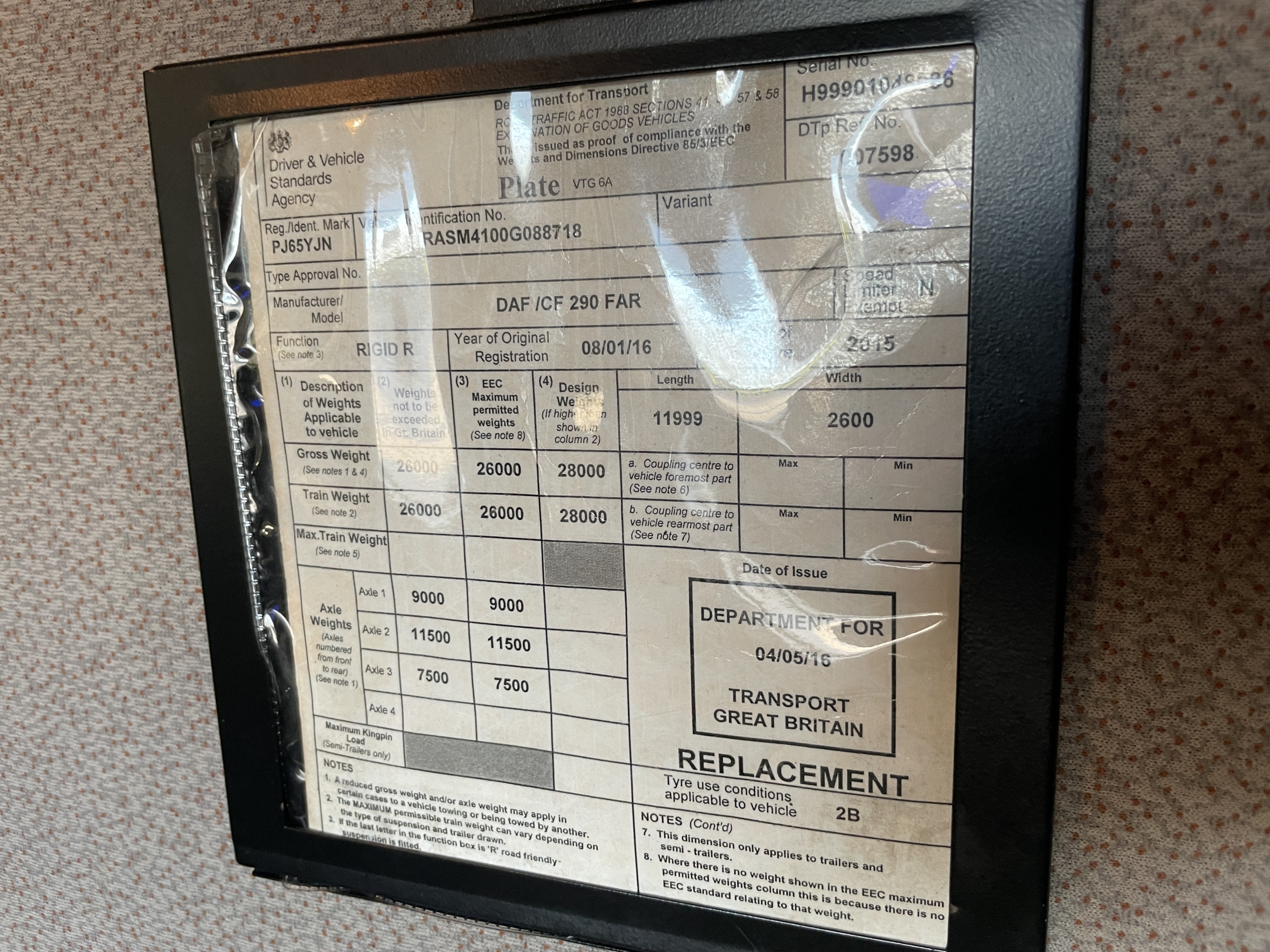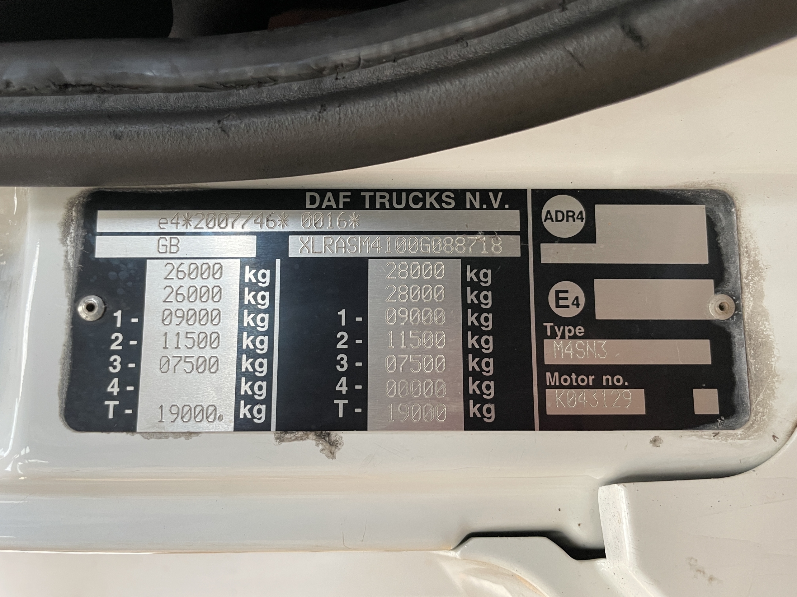 Front Axle Weight : 9,000 Kgs.