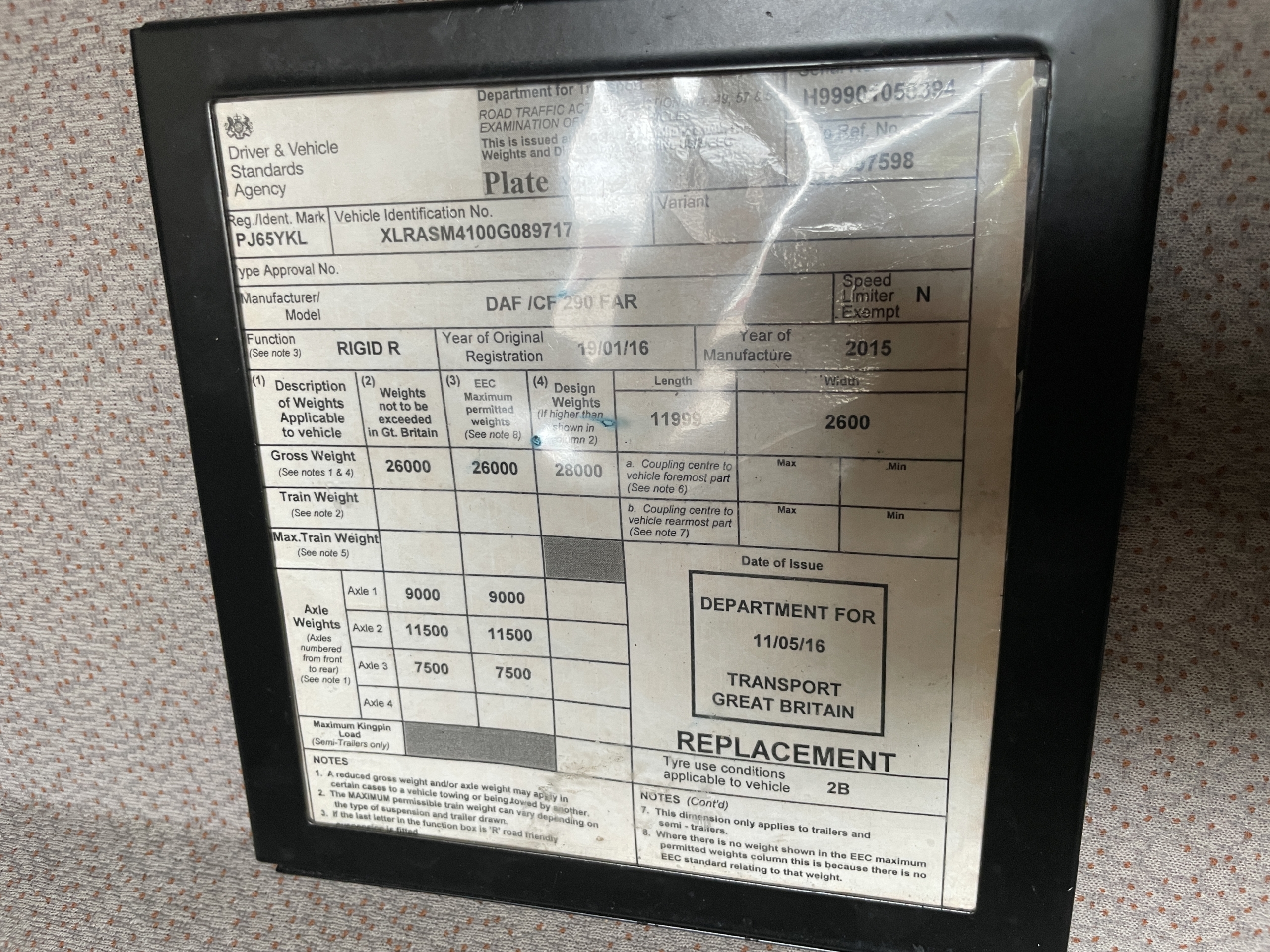 DAF CF290 *EURO 6*, 6X2 26 TONNE INSULATED FRIDGE/FREEZER – 2016 – PJ65 YKL