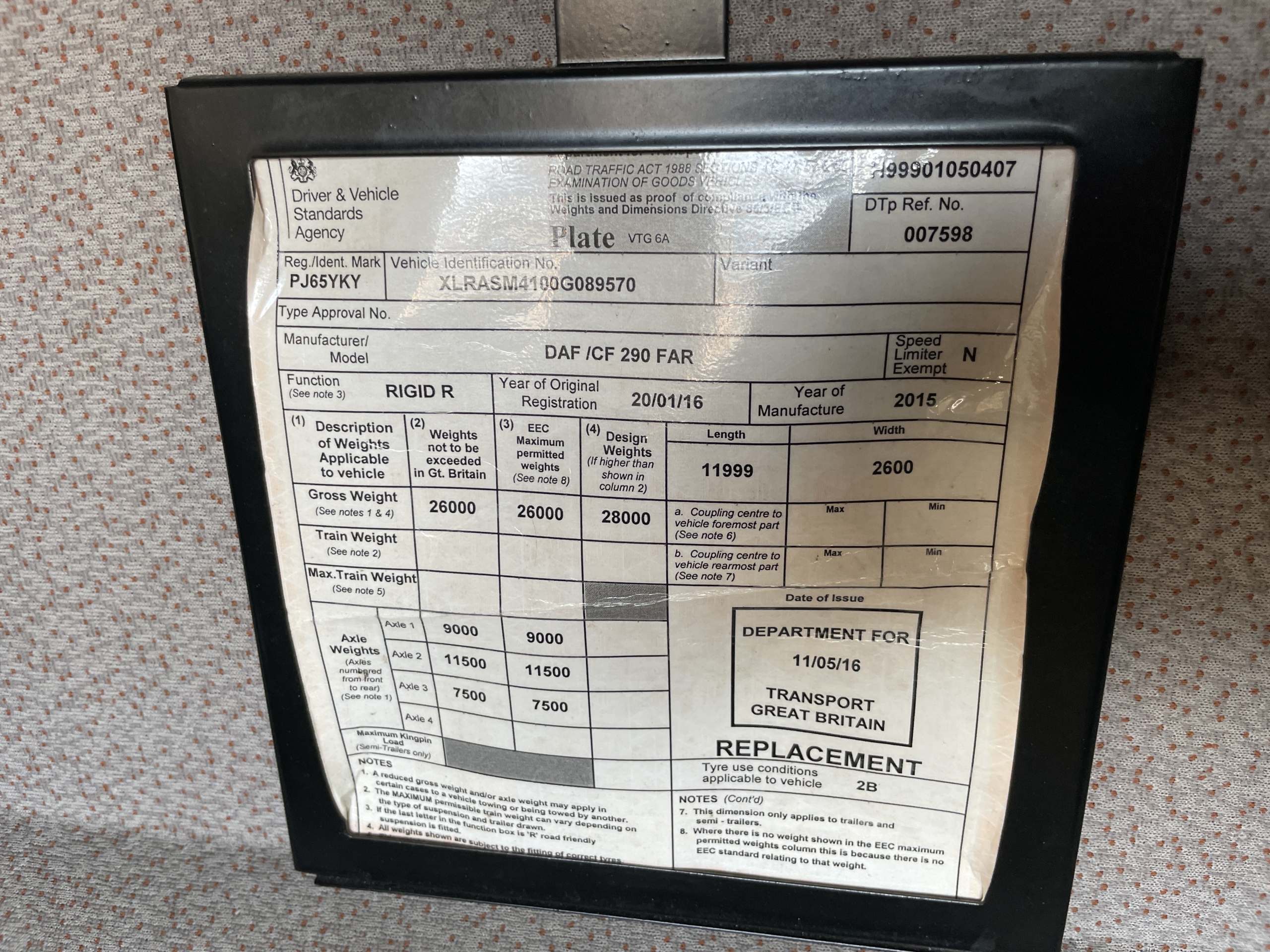 Registration Number : PJ65YKY