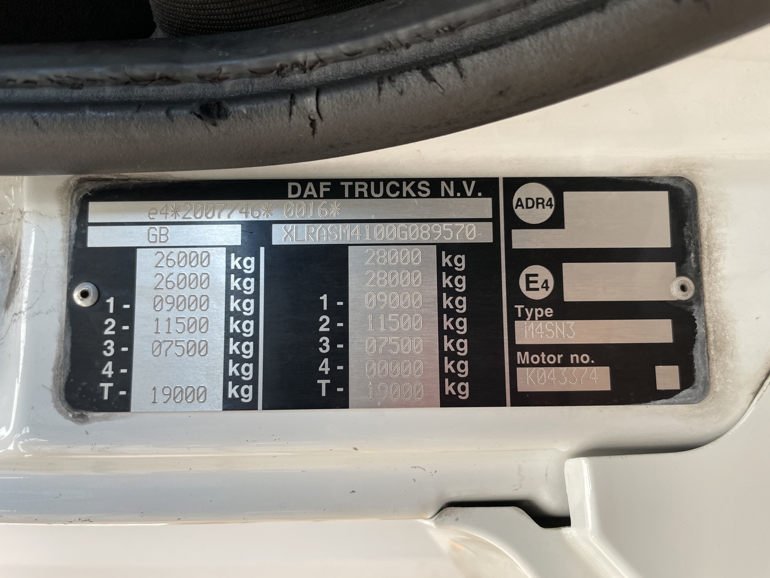Front Axle Weight : 9,000 Kgs.