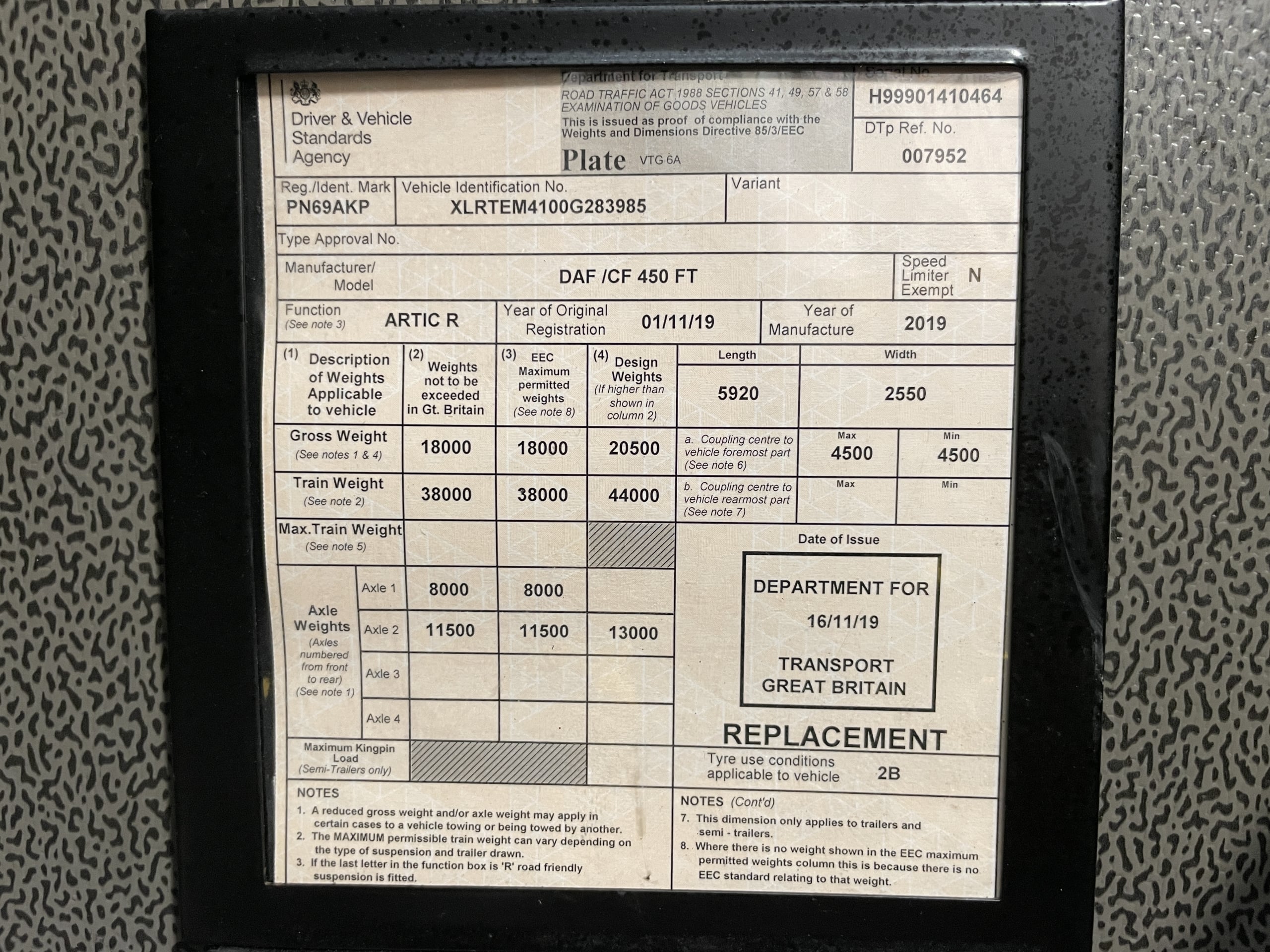 DAF CF450 *EURO 6*, 4X2 TRACTOR UNIT – 2019 – PN69 AKP