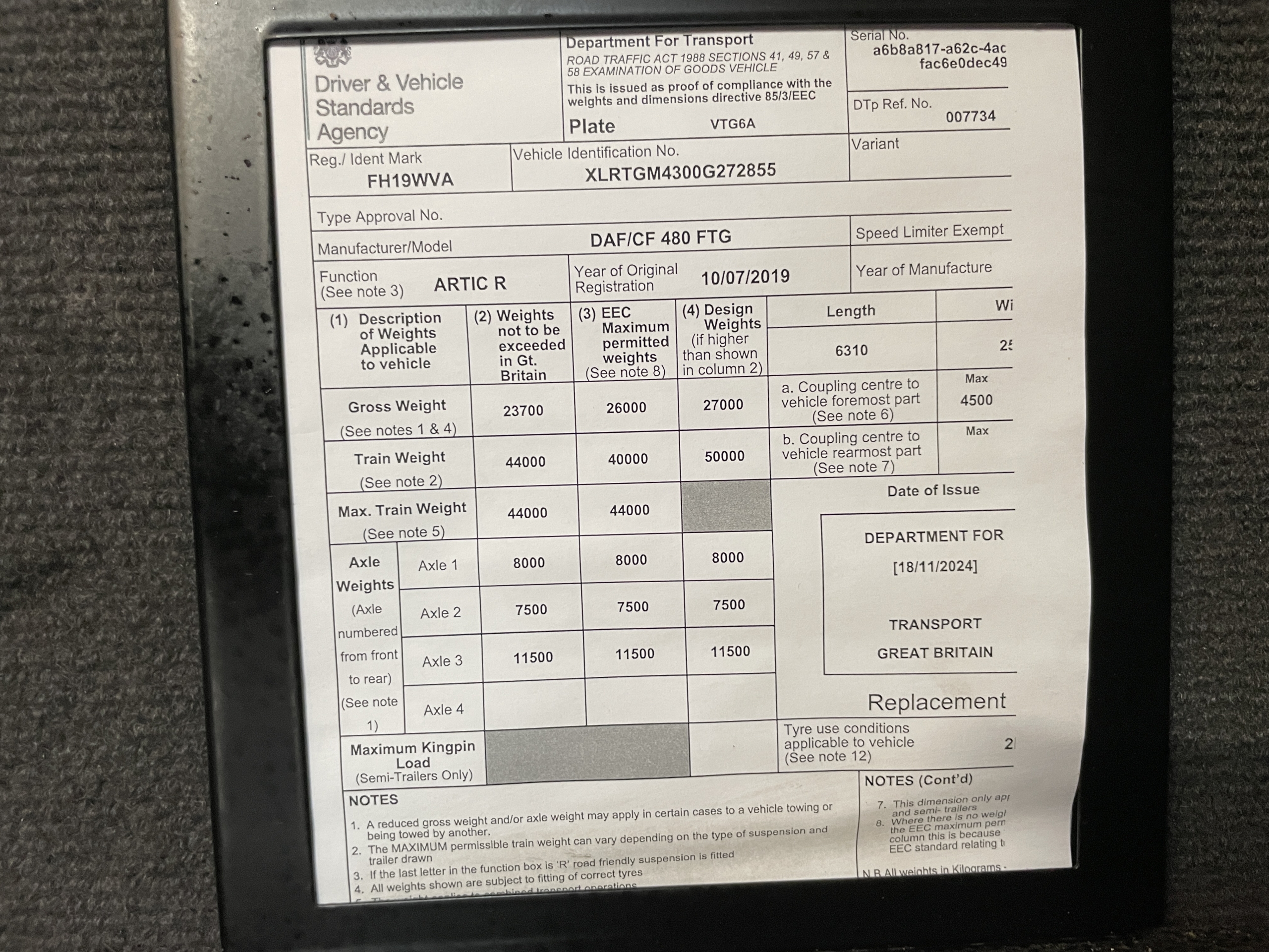 DAF CF480 *EURO 6* SPACE CAB 6X2 TRACTOR UNIT – 2019 – FH19 WVA
