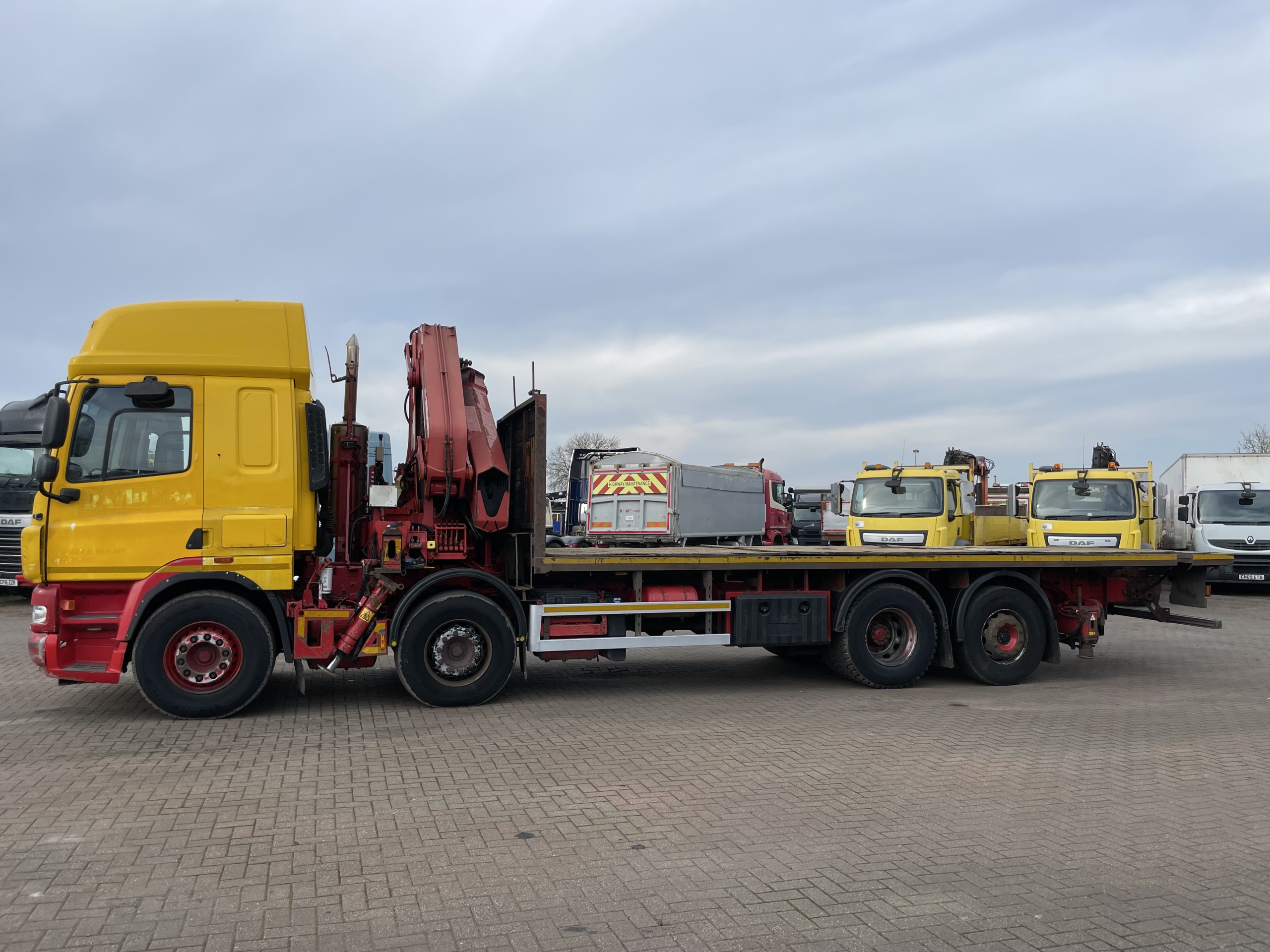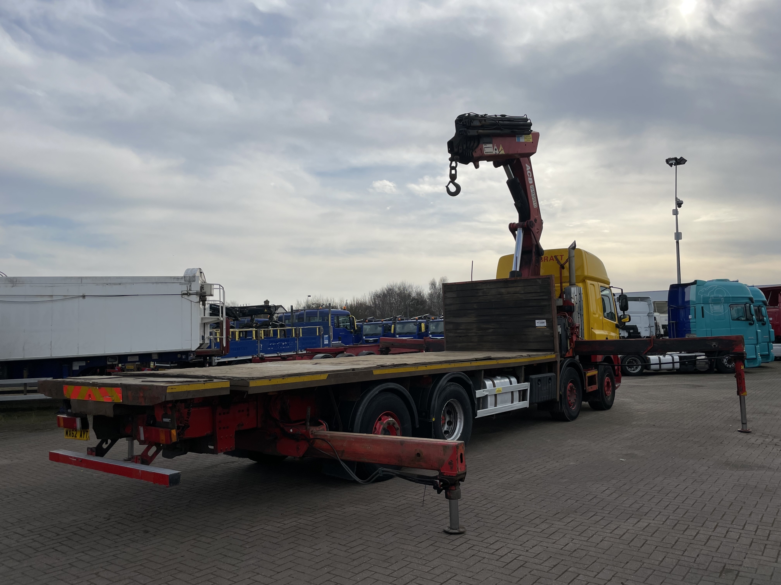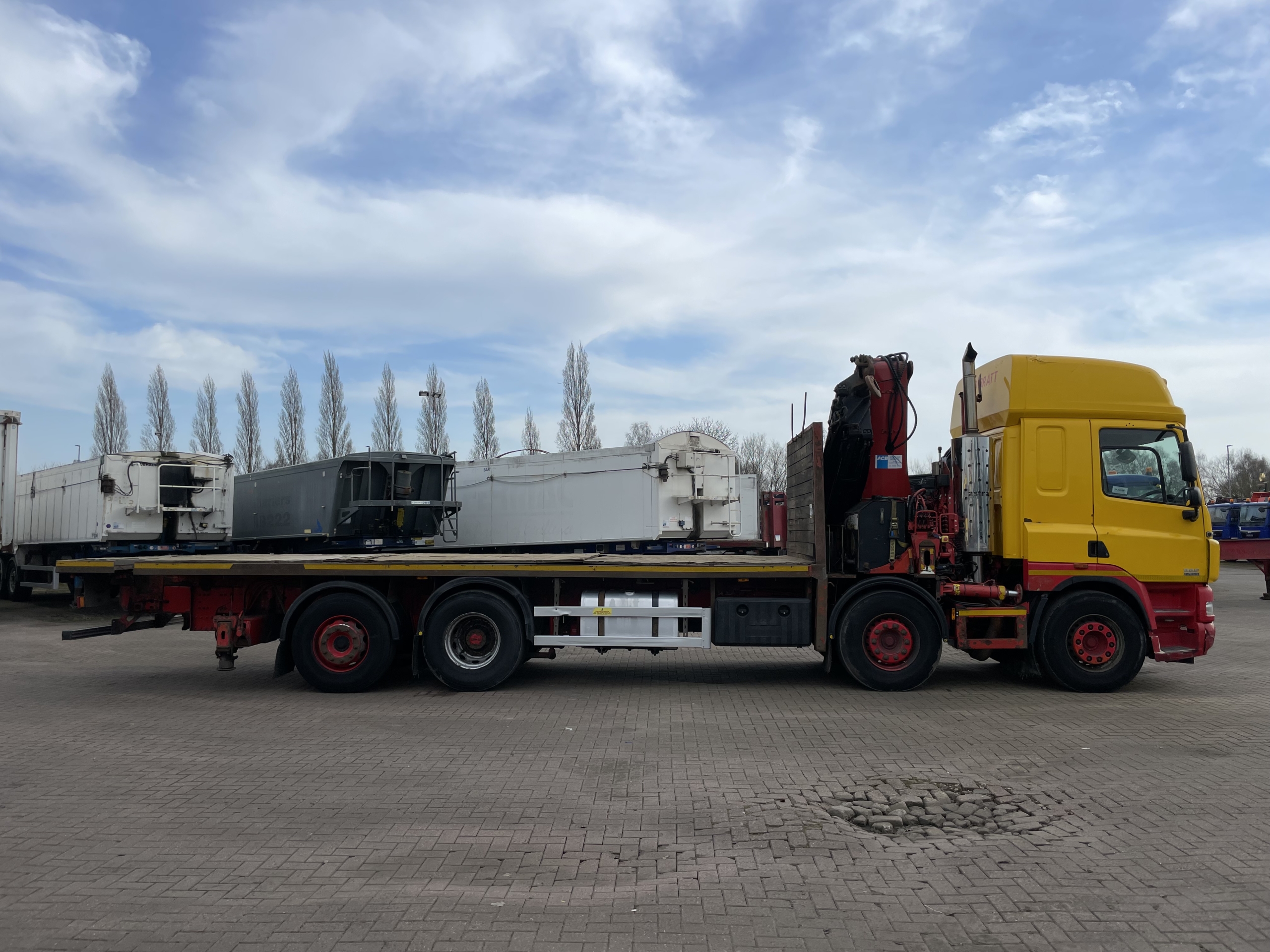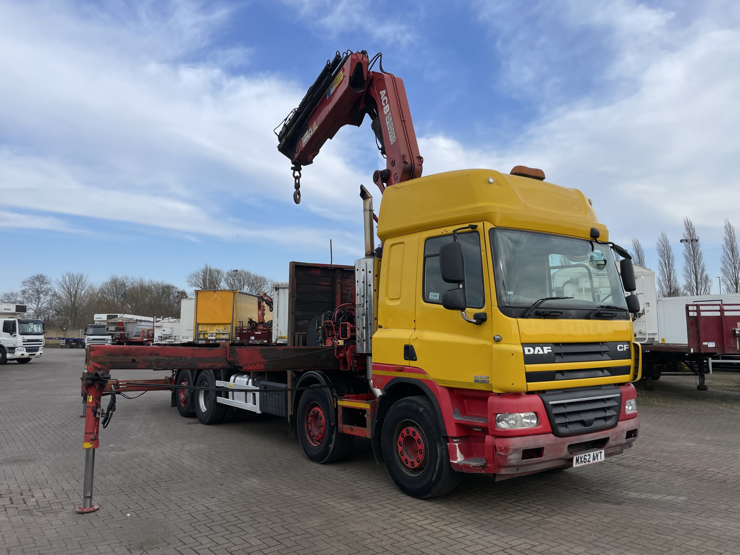 DAF CF85 360 EURO 5, 8X2 DRAWBAR SPEC FLATBED/CRANE – 2012 – MX62 AYT (Currently in Walvis Bay Port With 2013 DAF Tipper Loaded On The Back)