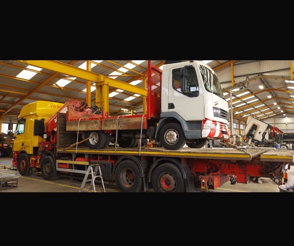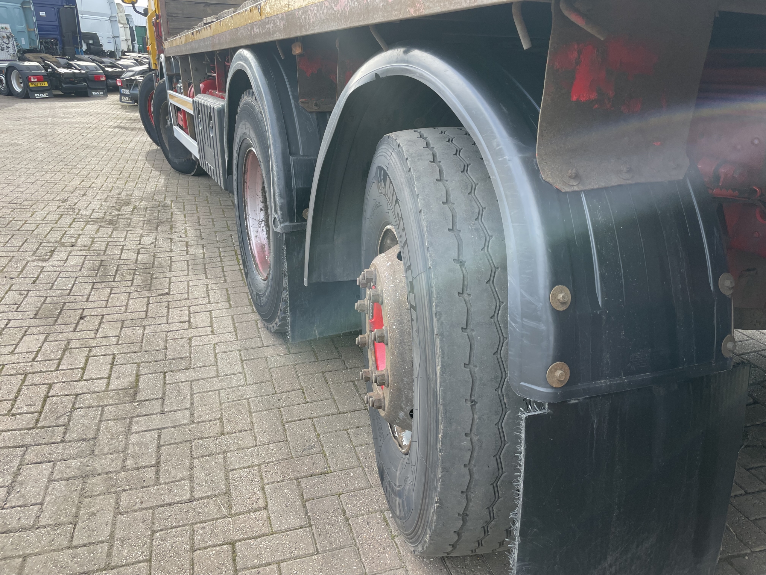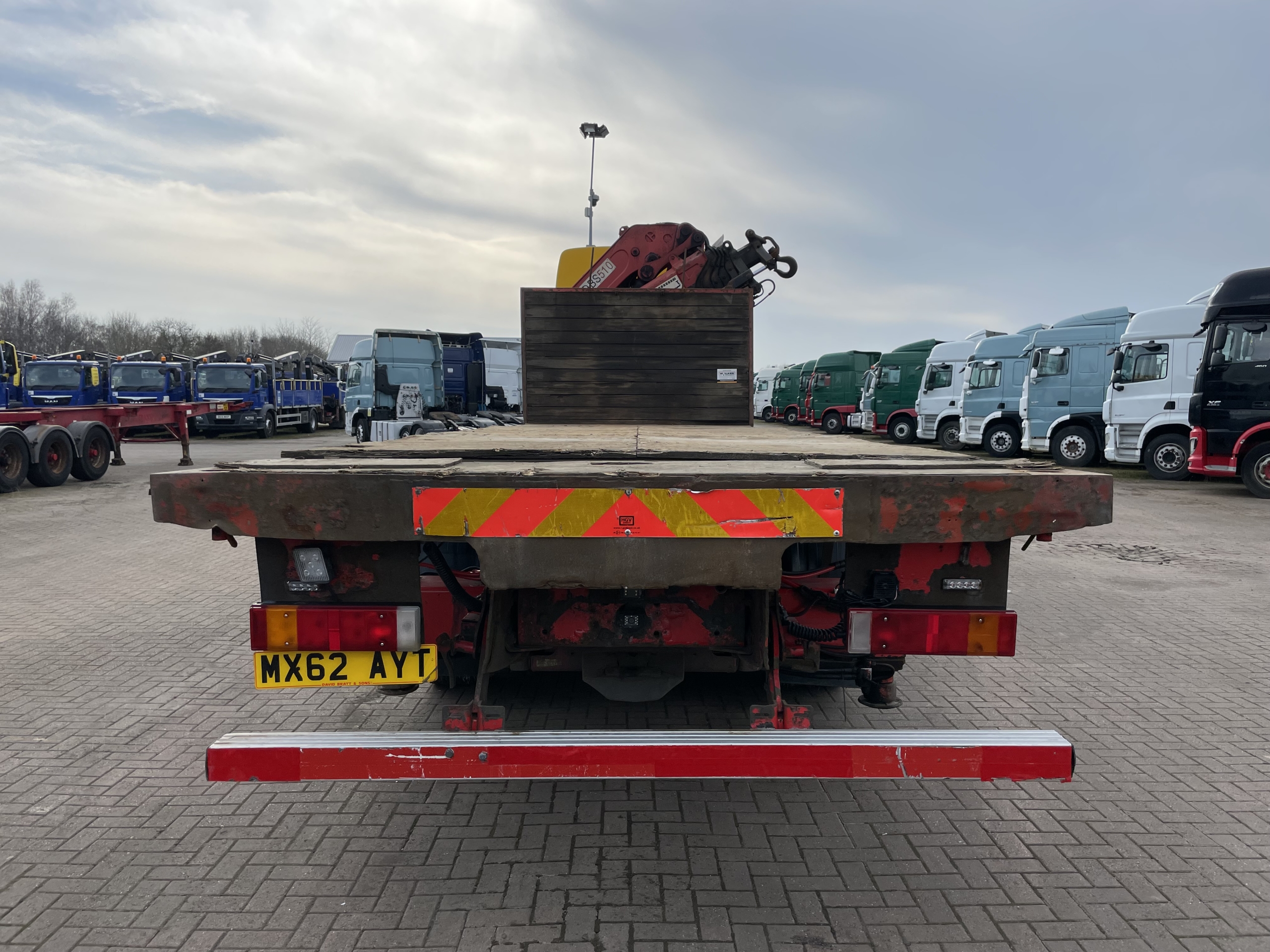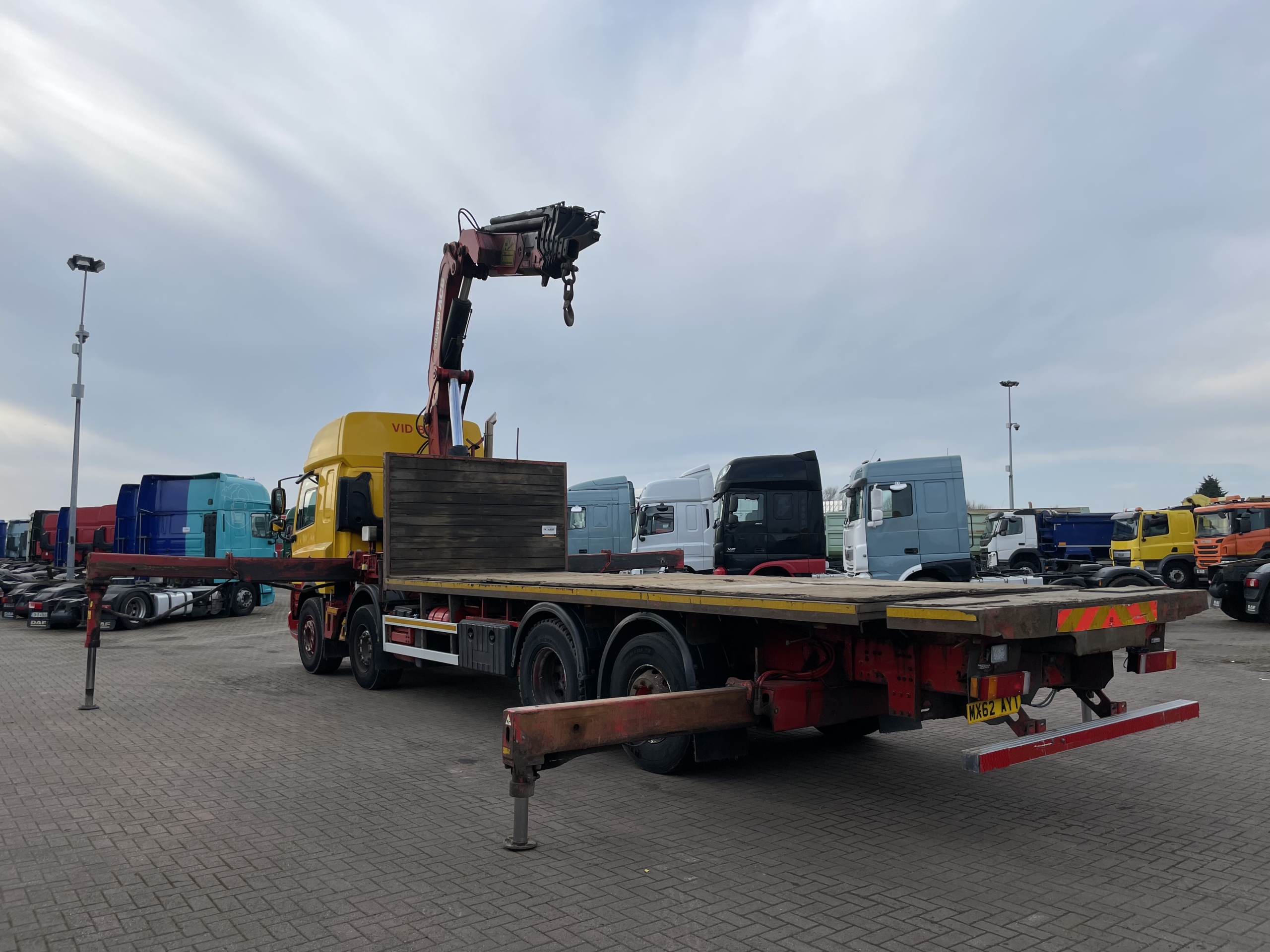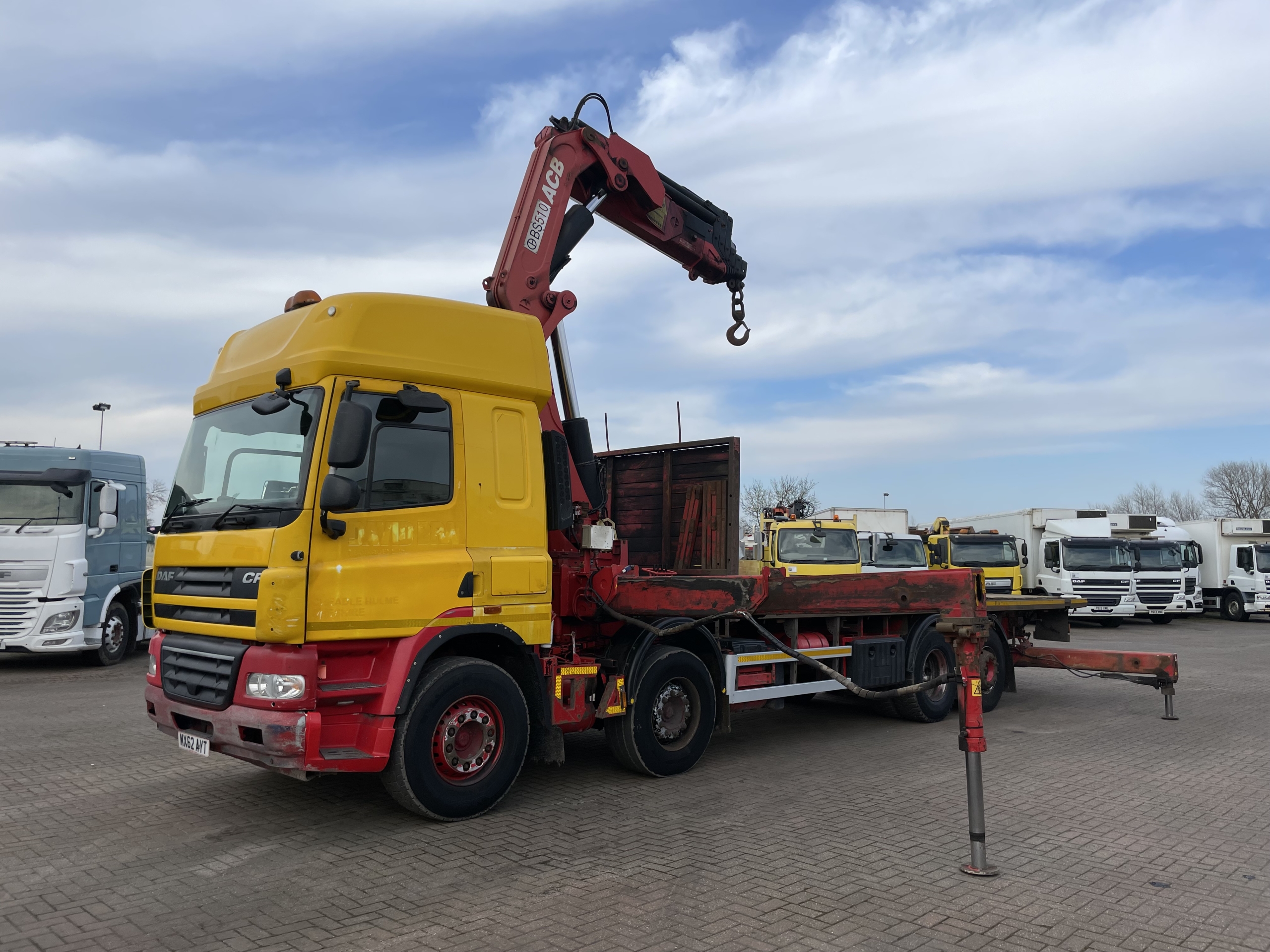 DAF CF85 360 EURO 5, 8X2 DRAWBAR SPEC FLATBED/CRANE – 2012 – MX62 AYT (Currently in Walvis Bay Port With 2013 DAF Tipper Loaded On The Back)