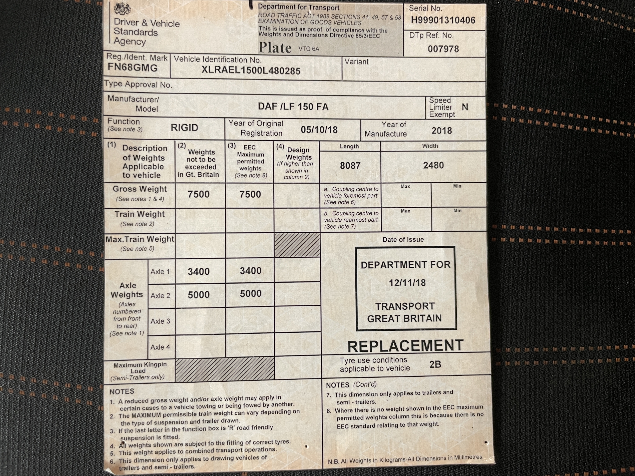 Registration Number : FN68GMG