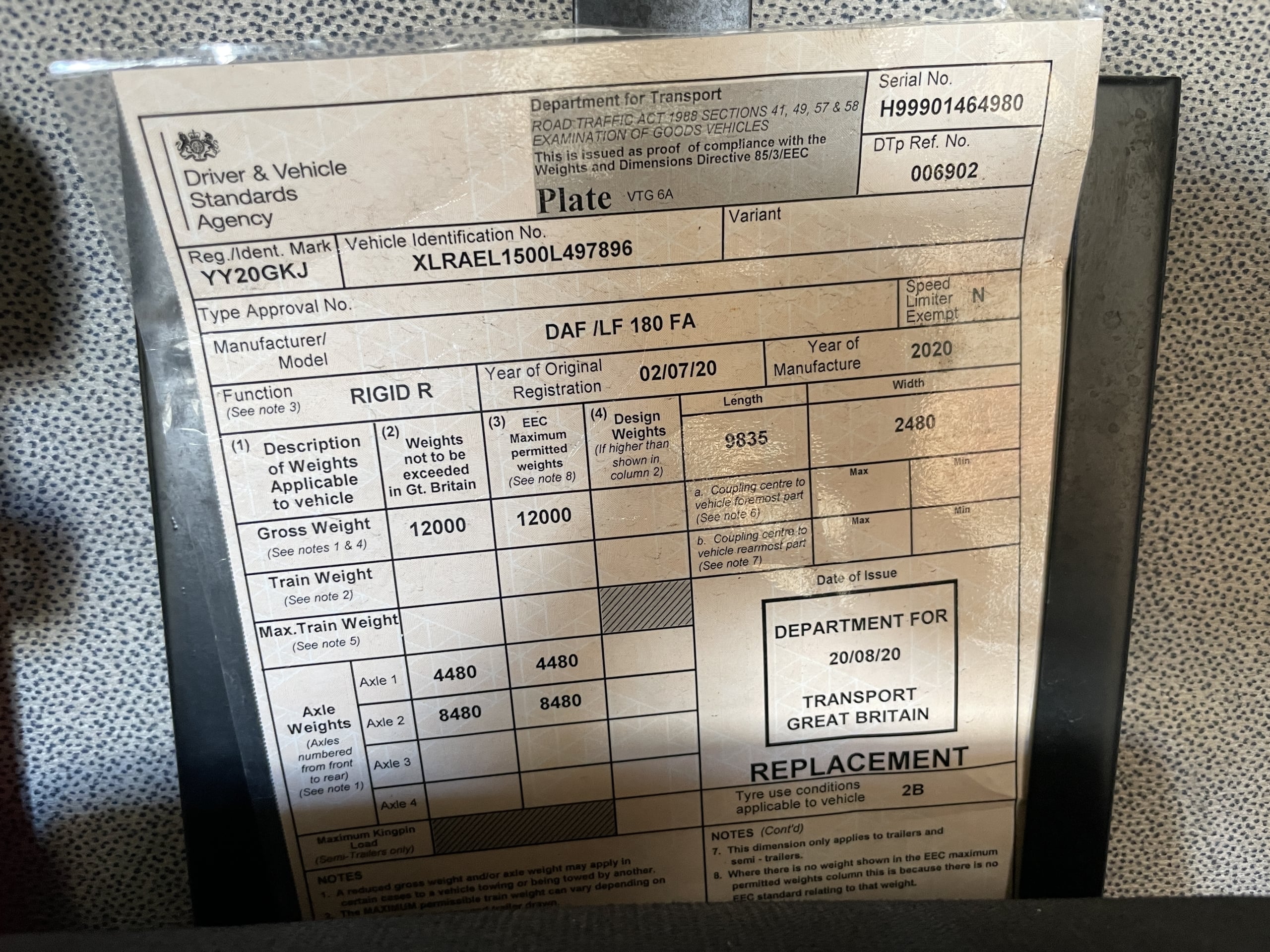 Registration Number : YY20GKJ