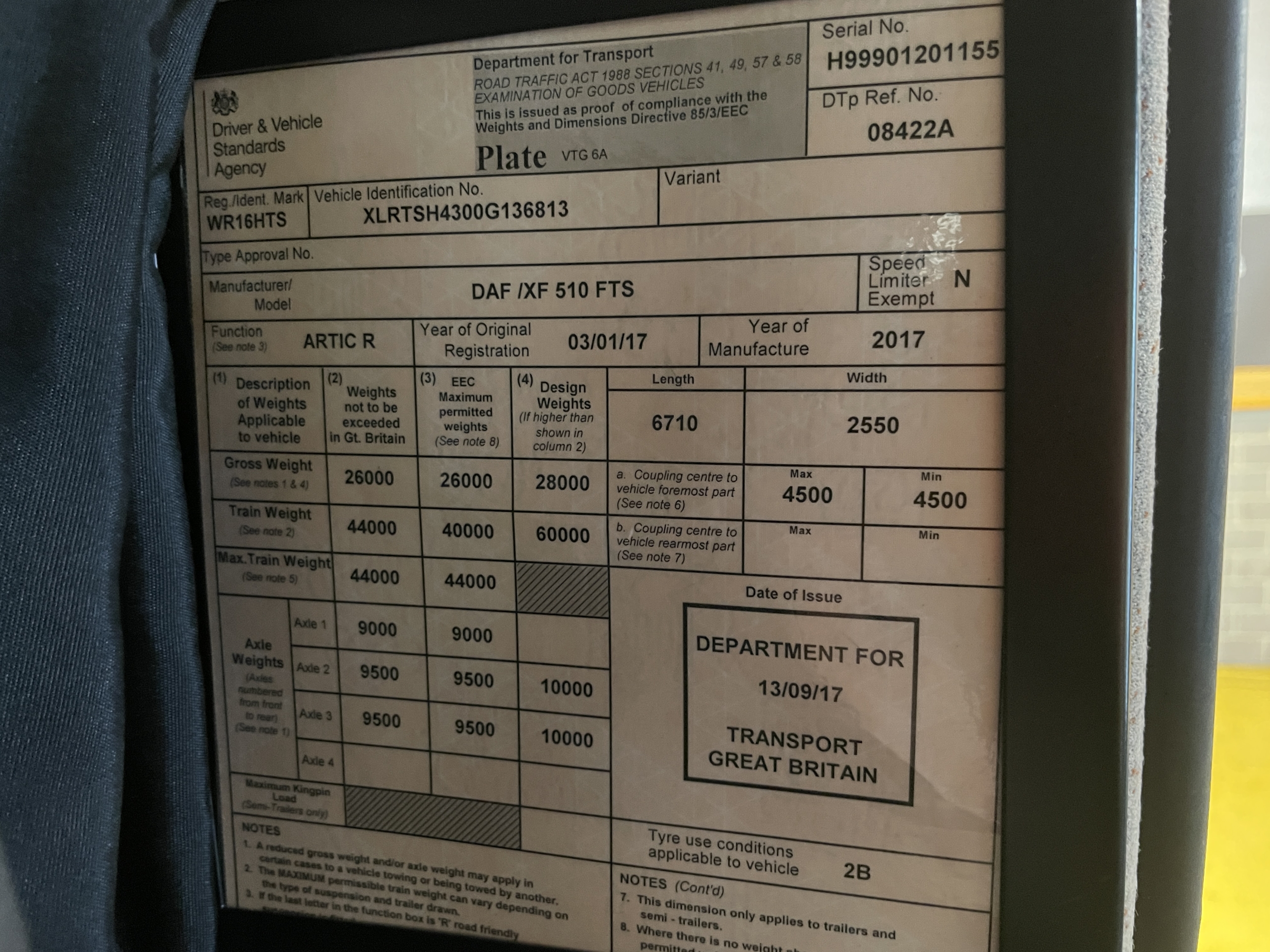Front Axle Plated Weight: 9,000 Kgs.