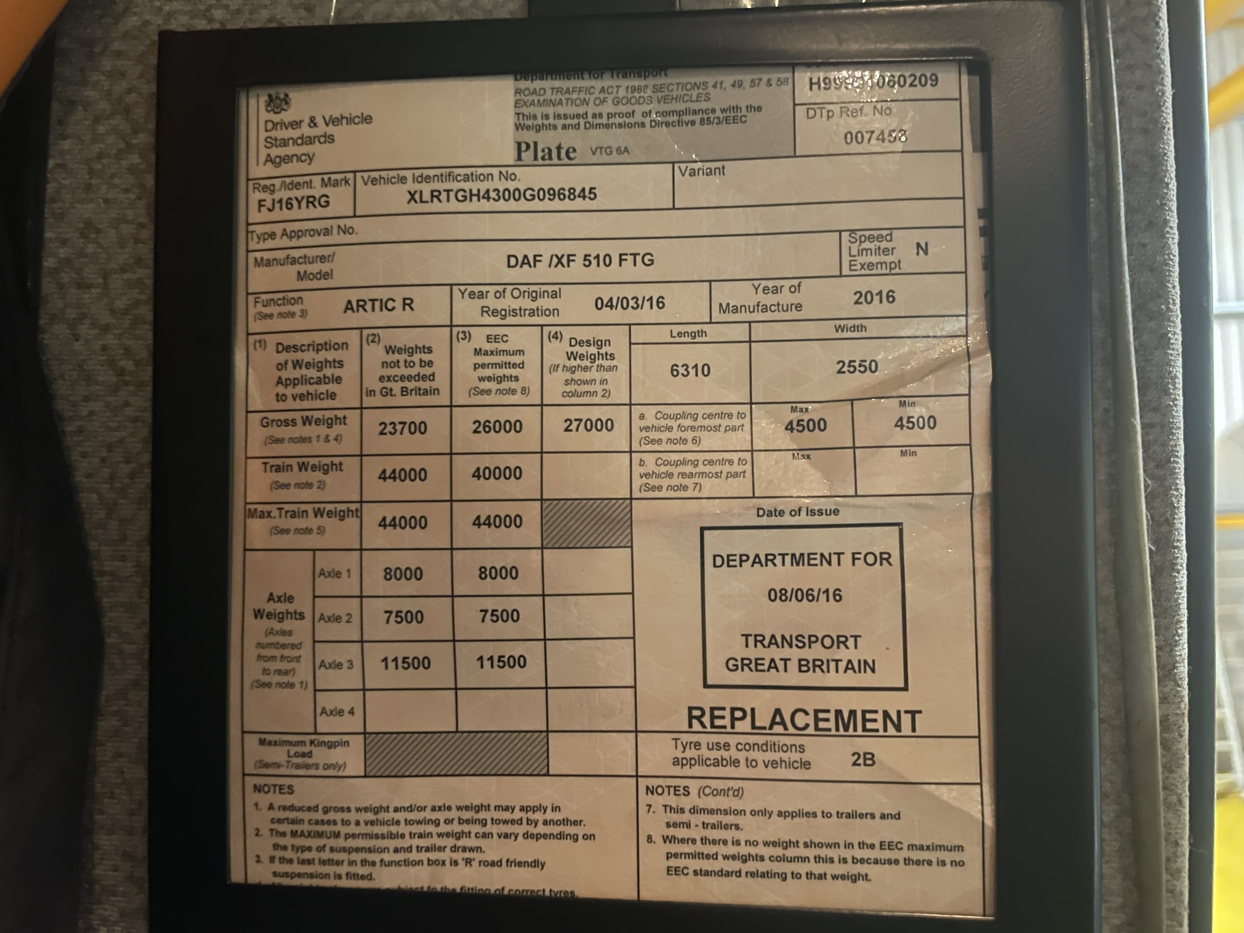 Registration Number : FJ16YRG