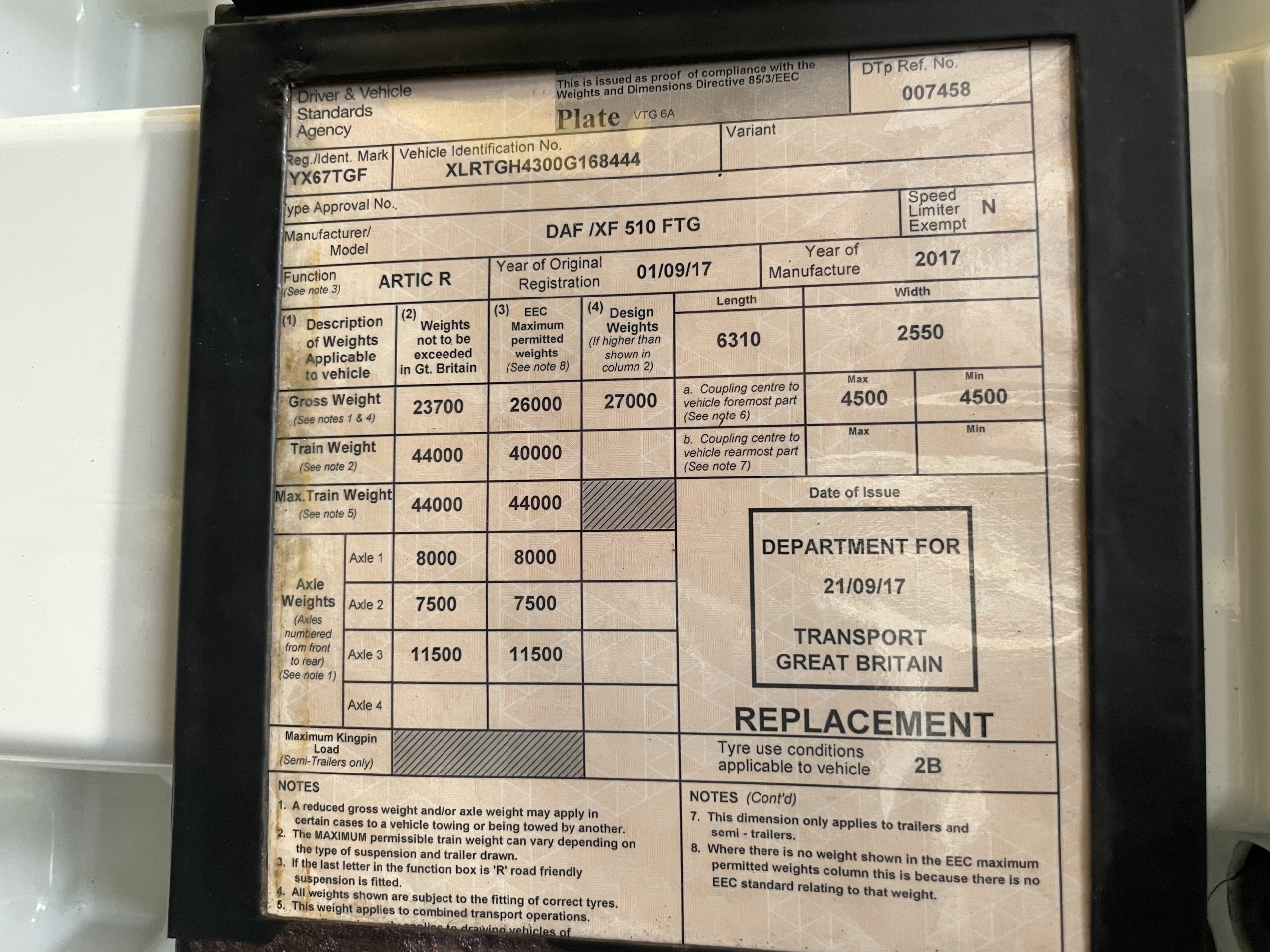 Registration Number : YX67TGF