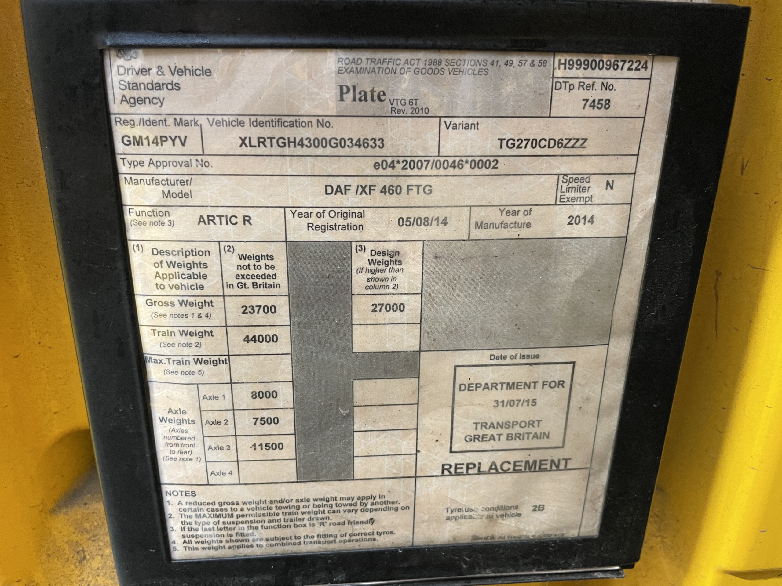 DAF XF106 *EURO 6* 6X2 TRACTOR UNIT – 2014 – GM14 PYV