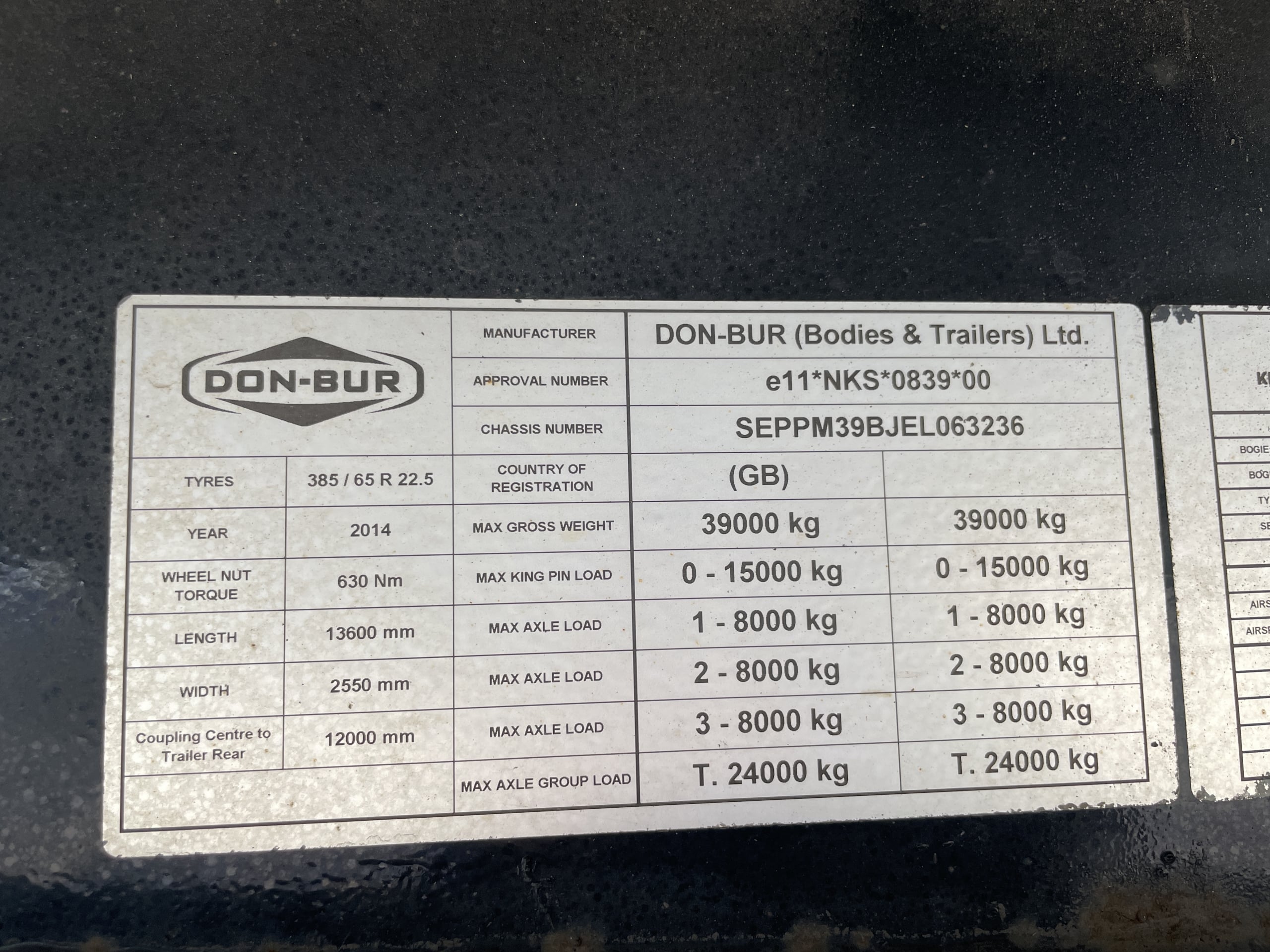 DON BUR 45FT STREAMLINE CURTAINSIDER TRAILER – 2014 – C385853