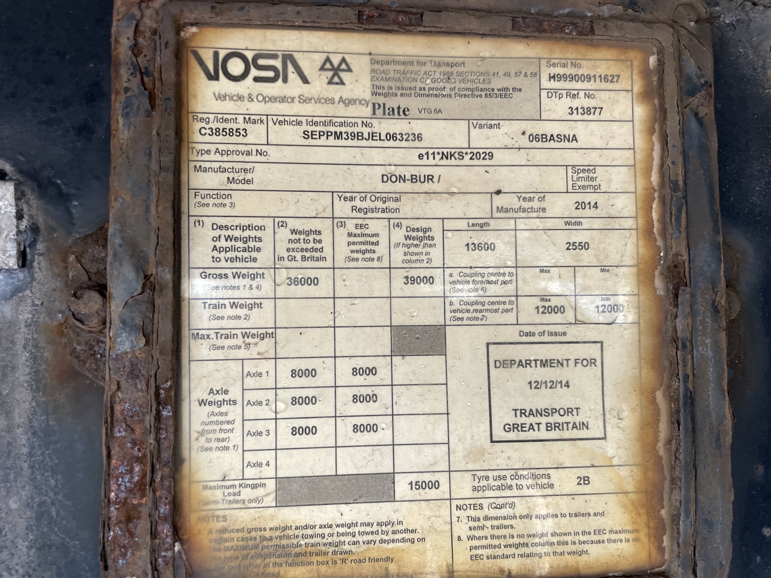 King Pin Plated Weight: 15,000 Kgs.