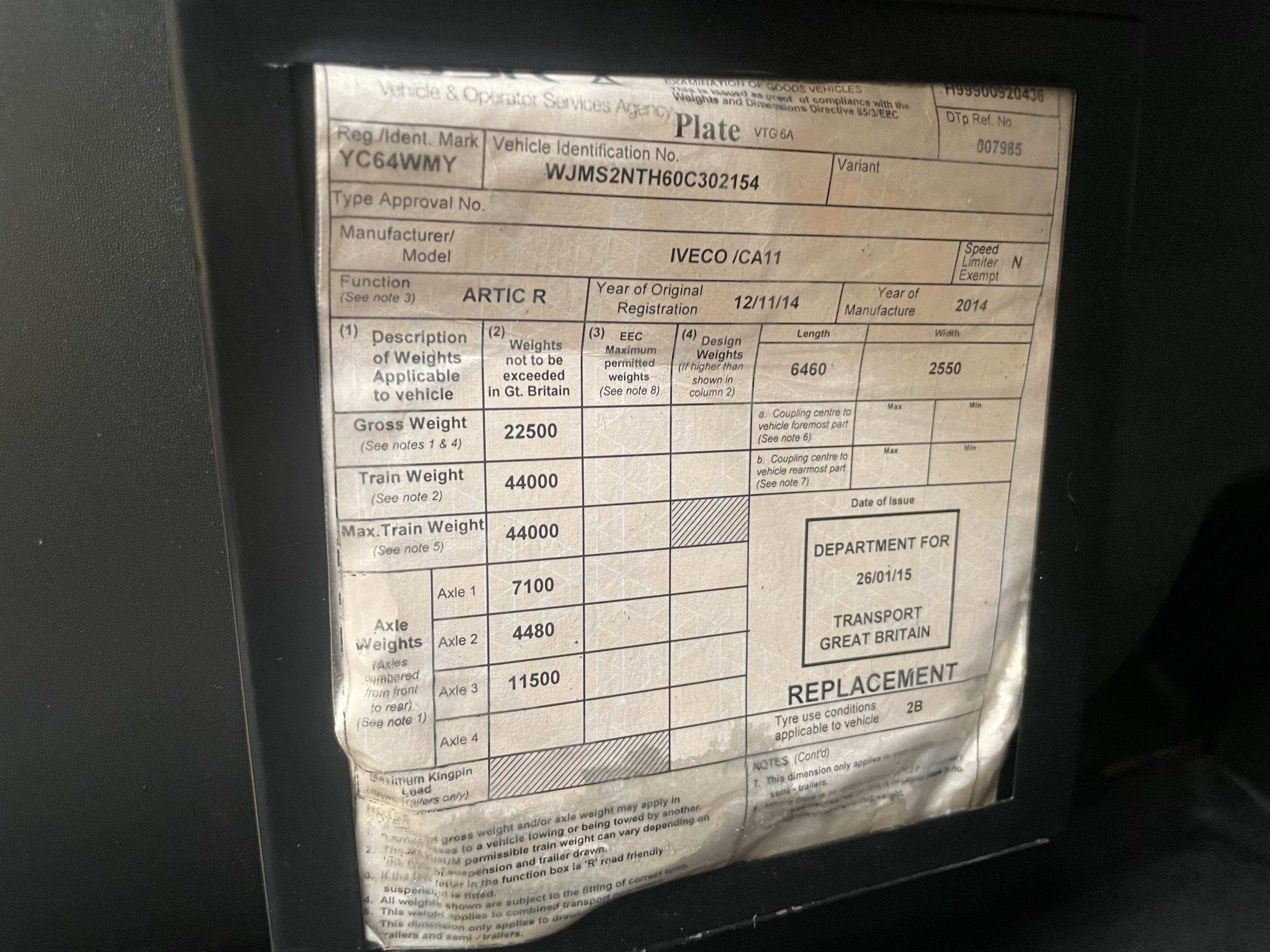 IVECO STRALIS 460 *EURO 6*, 6X2 TRACTOR UNIT – 2014 – YC64 WMY