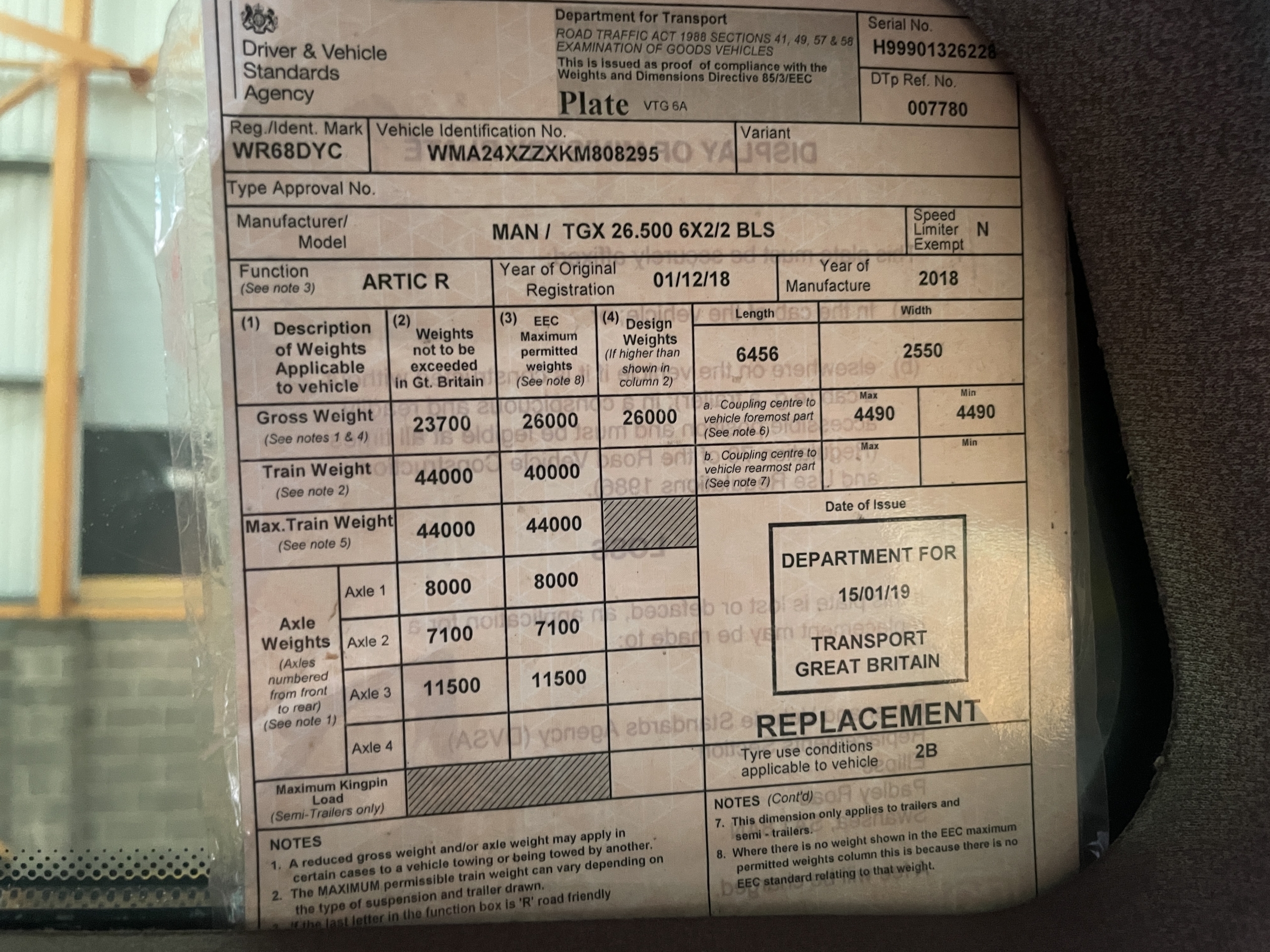 Registration Number : WR68DYC