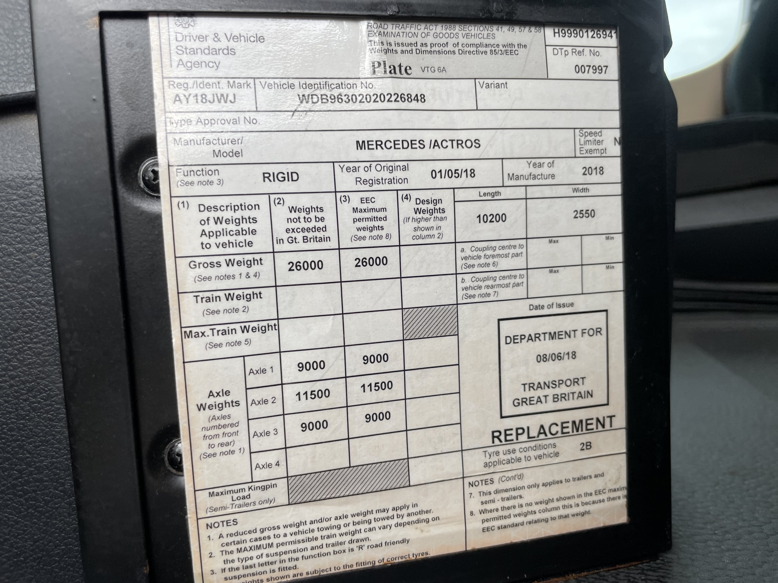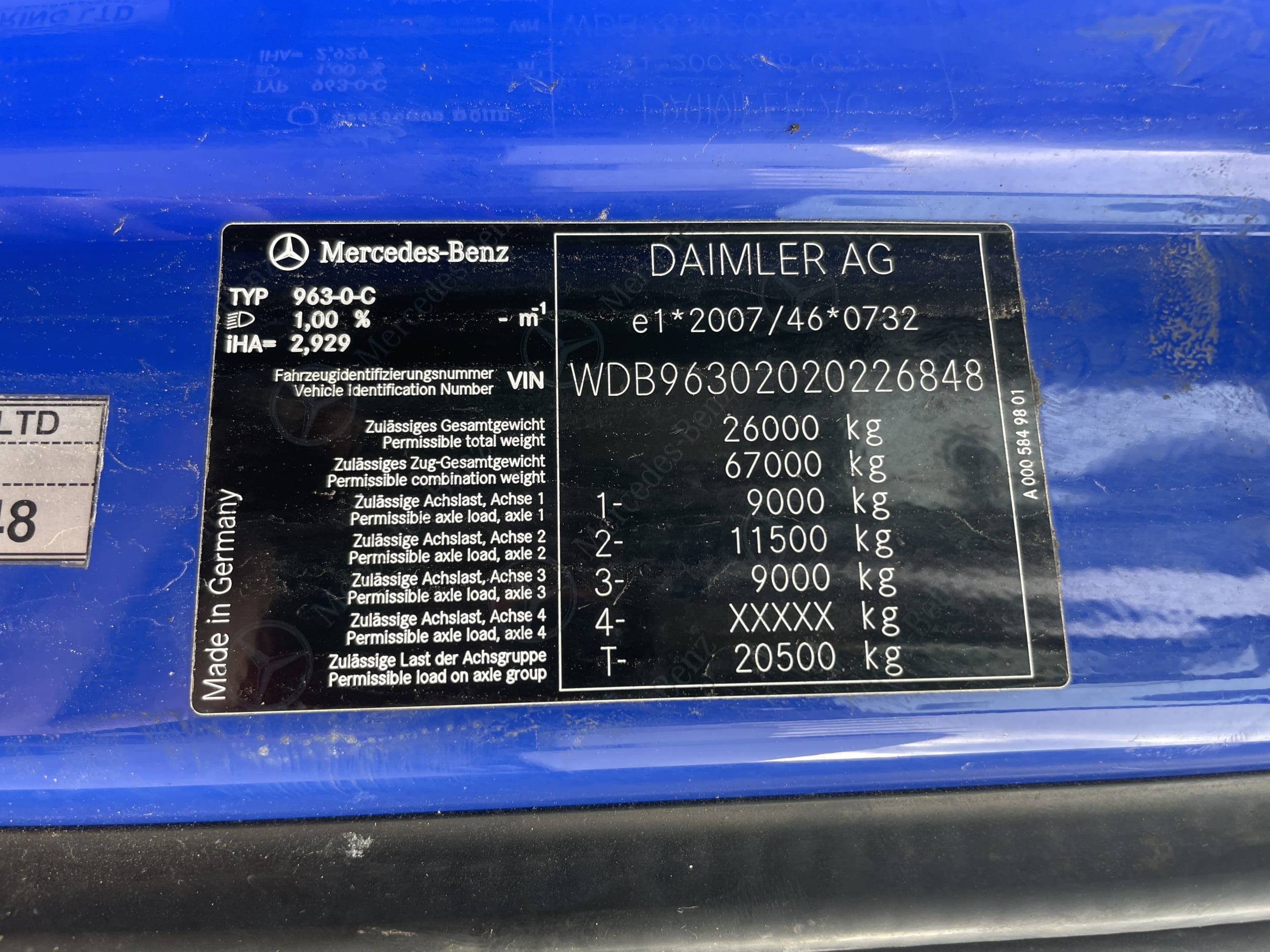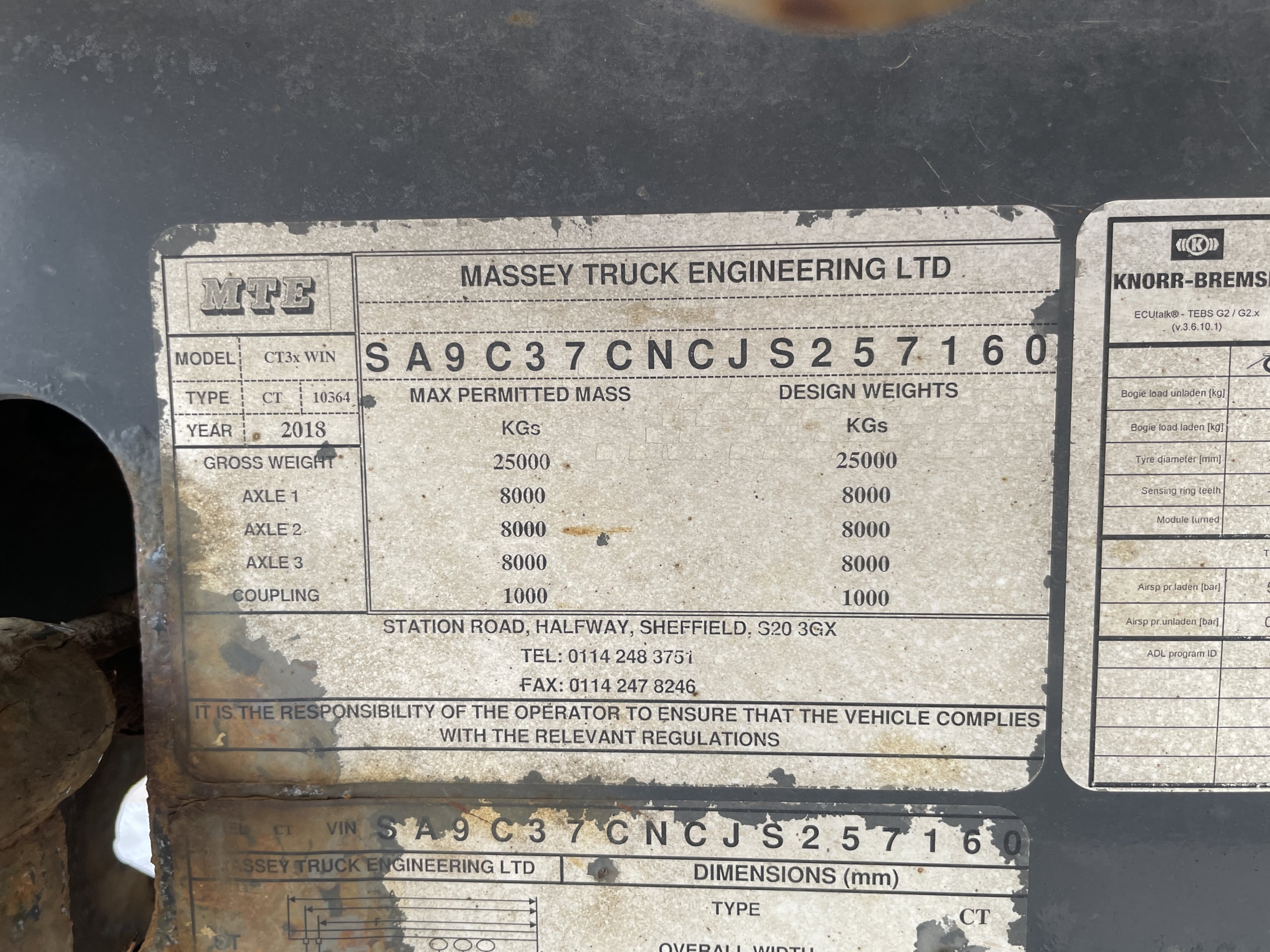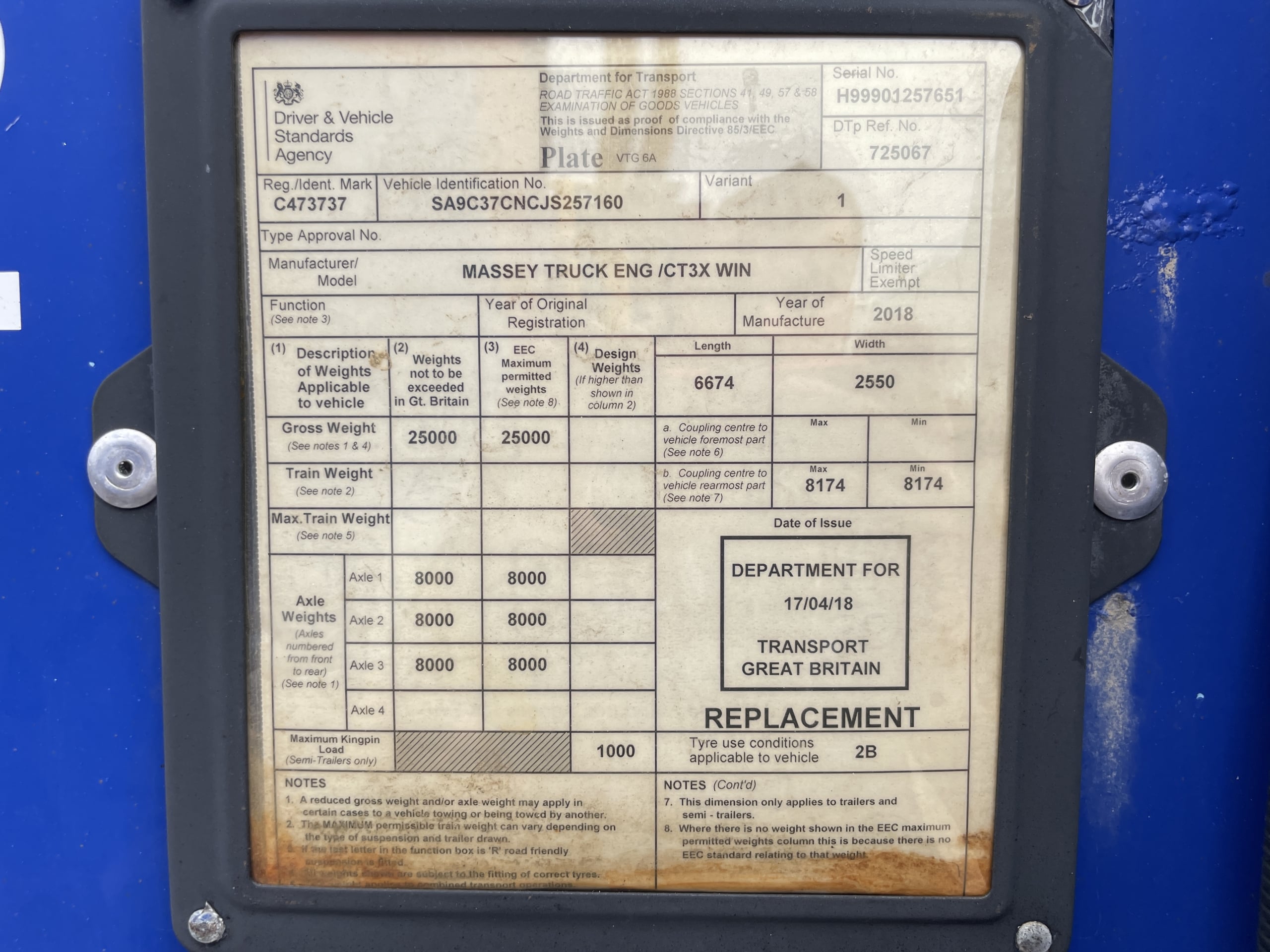 Front Axle Plated Weight: 9,000 Kgs