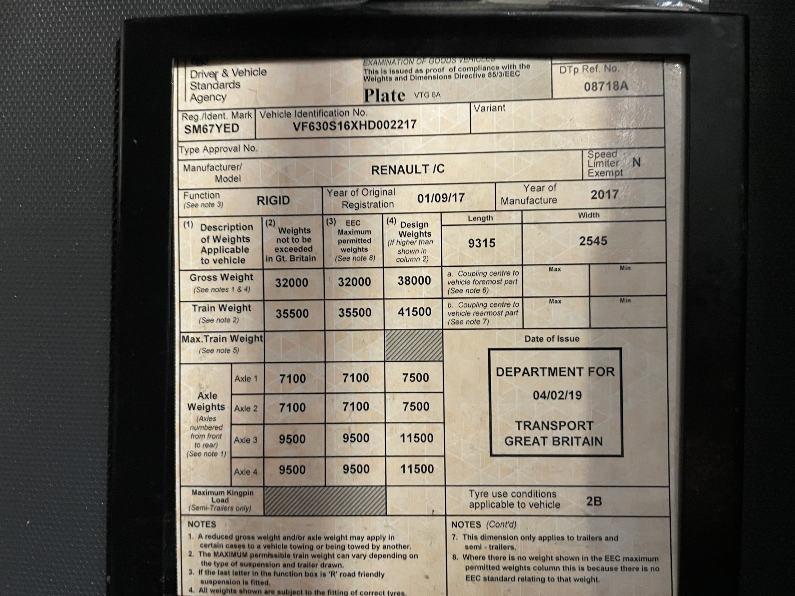 Registration Number: SM67YED