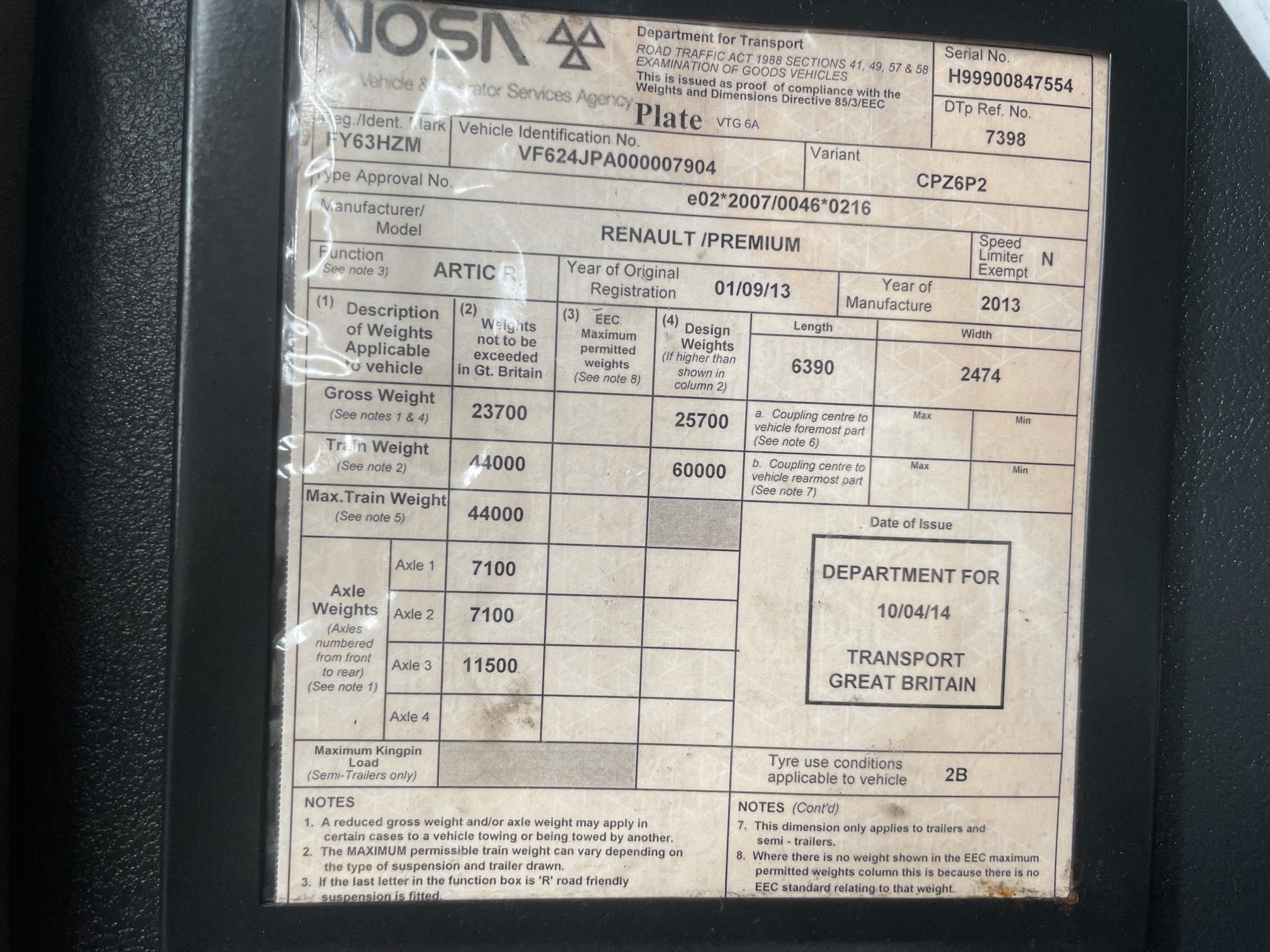 RENAULT PREMIUM PRIVILEGE EURO 5 6X2 TRACTOR UNIT – 2013 – FY63 HZM