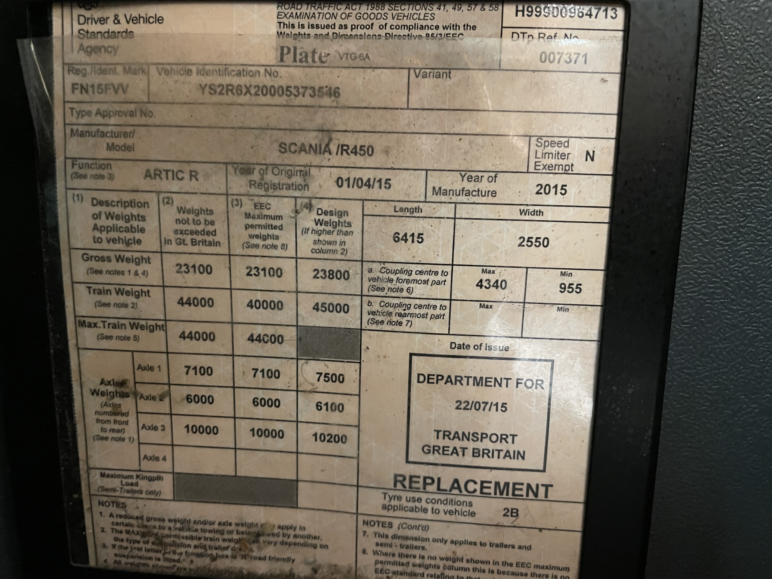 Registration Number : FN15FVV