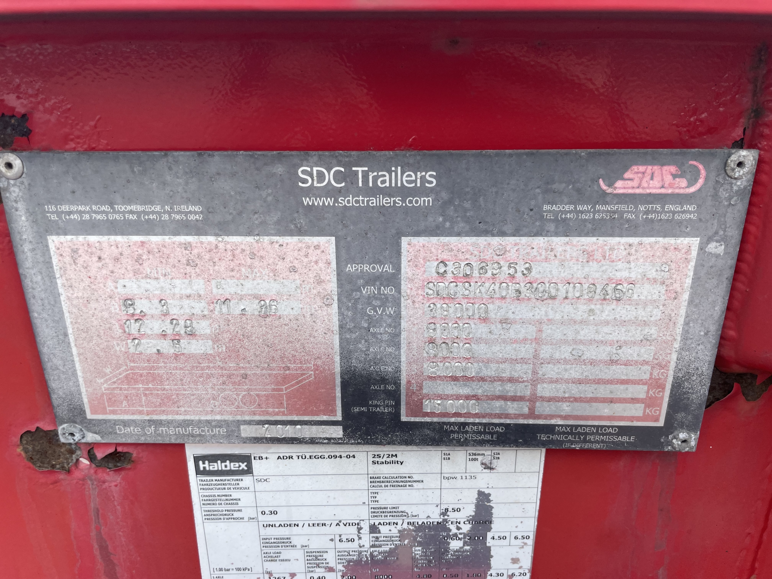 SDC LOCK AND GO SLIDING SKELETAL TRAILER – 2010 – C306953