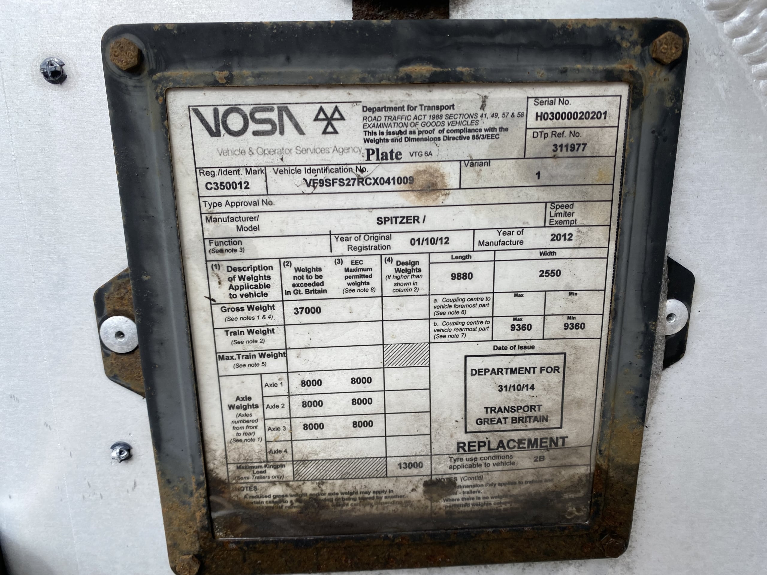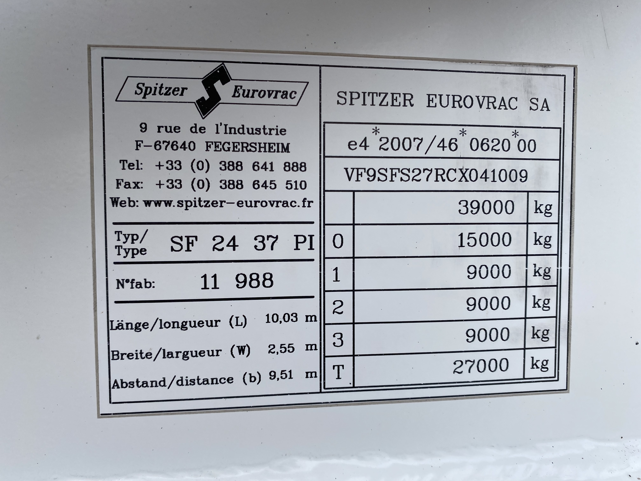 SPITZER EUROVRAC 37,000 LITRE CEMENT TANKER/BLOWER TRAILER – 2012 – C350012