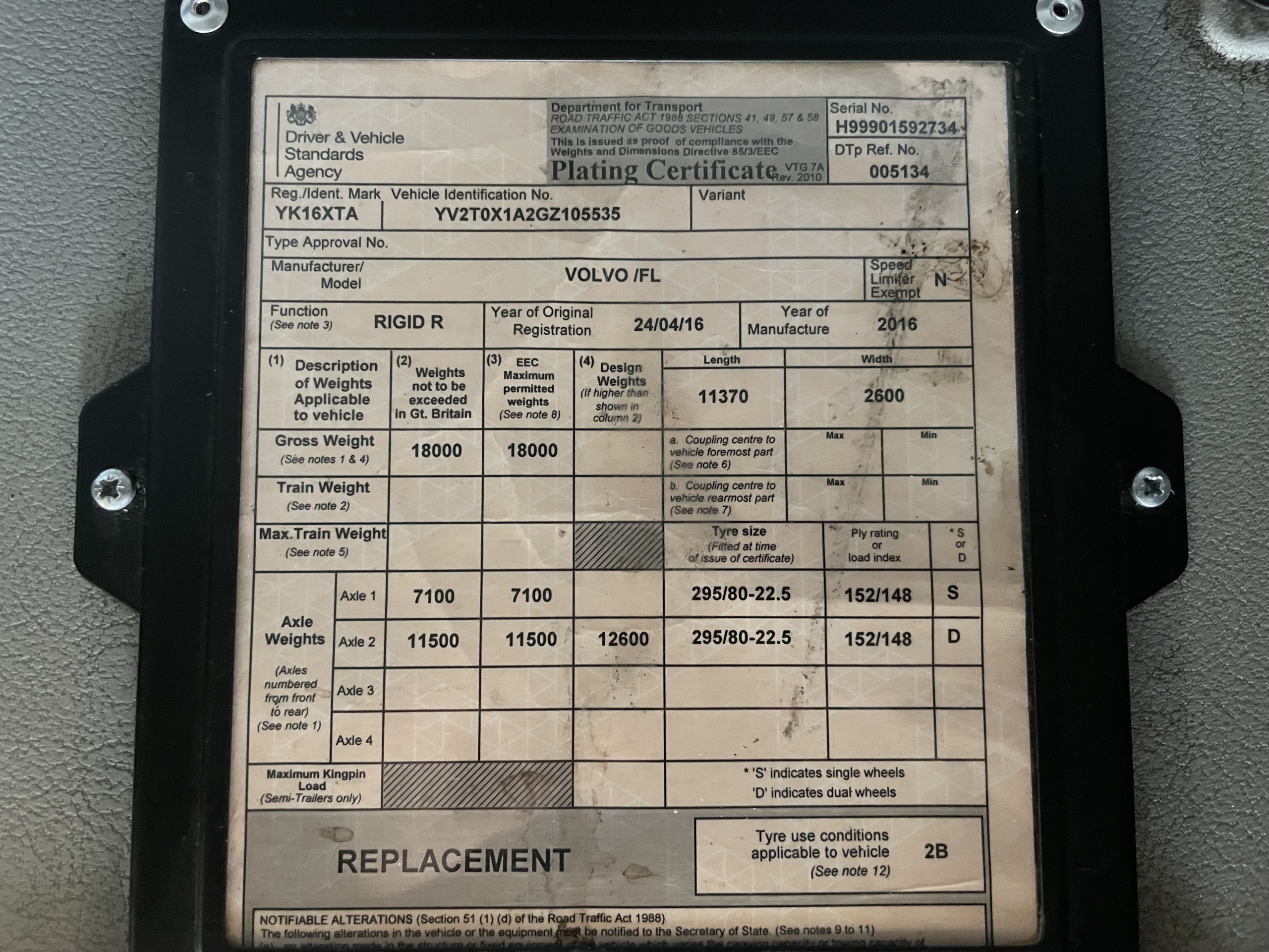 • Registration Number: YK16XTA