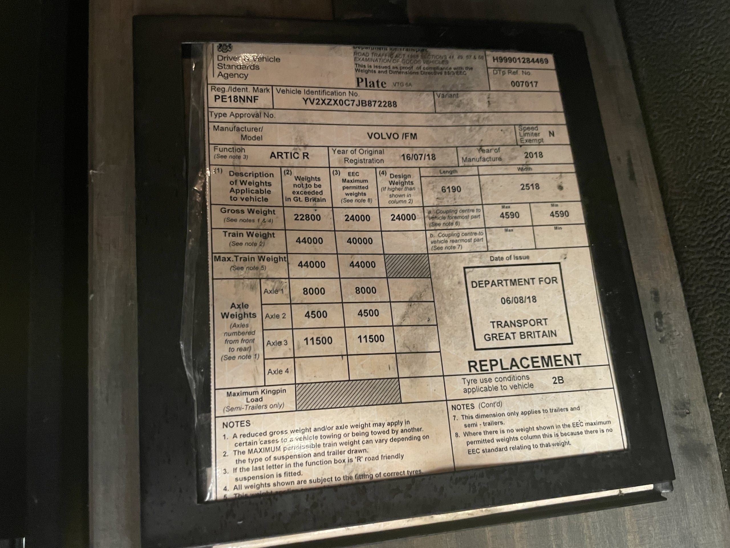 VOLVO FM 450 *EURO 6* PET REGS 6X2 TRACTOR UNIT – 2018 – PE18 NNF