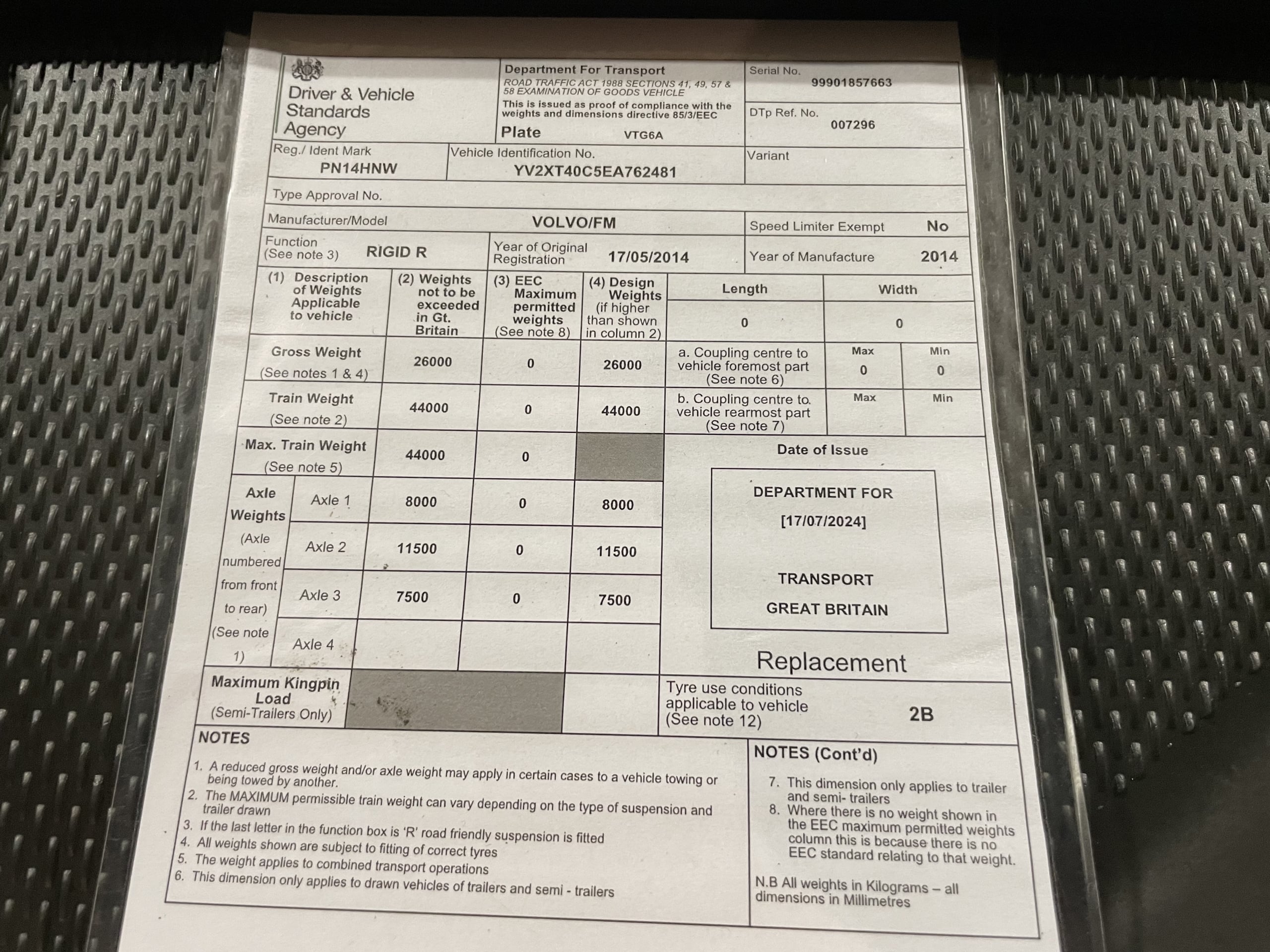 VOLVO FM-500 *EURO 6* 26 TONNE 6X2 DRAWBAR SPEC CURTAINSIDER – 2014 – PN14 HNW
